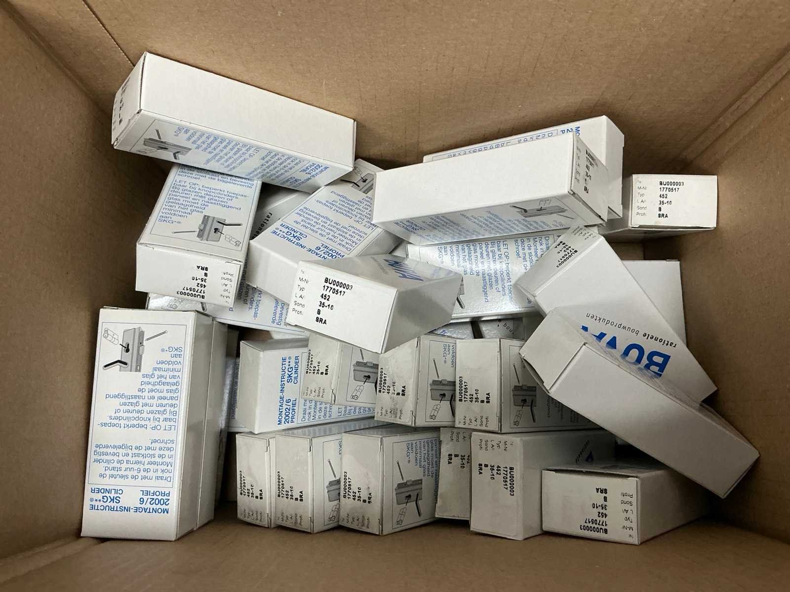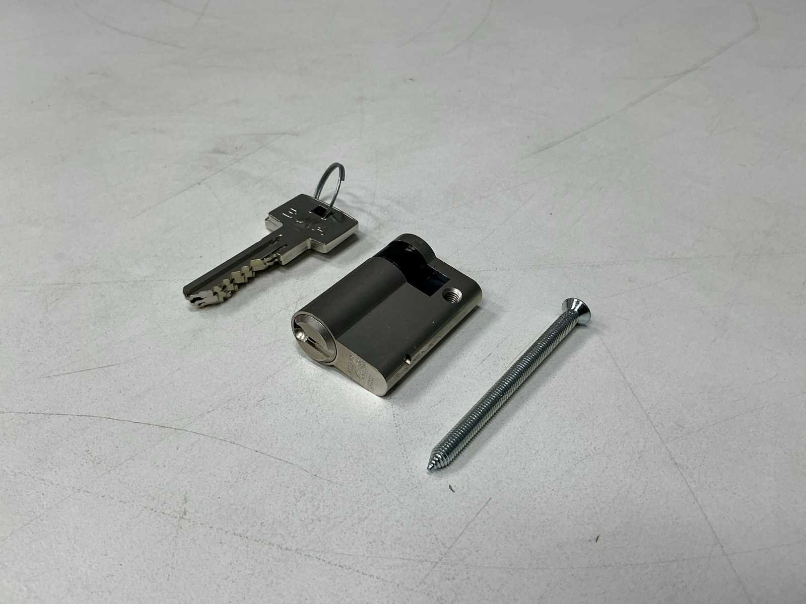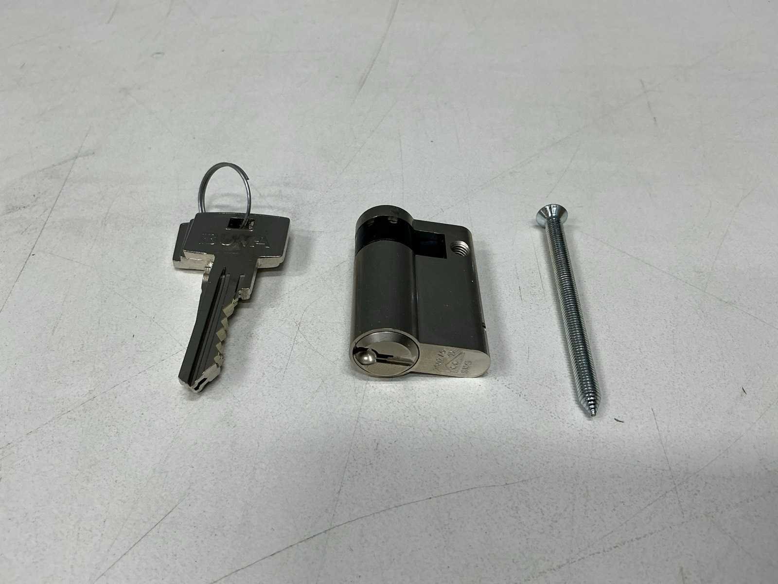 Compleet setje met slot sleutel en bijbehorende schroef Merk: Buva Model: 35-10 Product type: 452 Kleur: Zilver