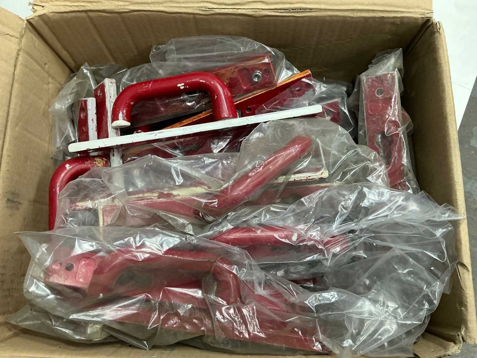 Oude gebruikte deurbeslag Merk: Buva Kleur: Rood Lengte: 25cm Breedte: 3cm