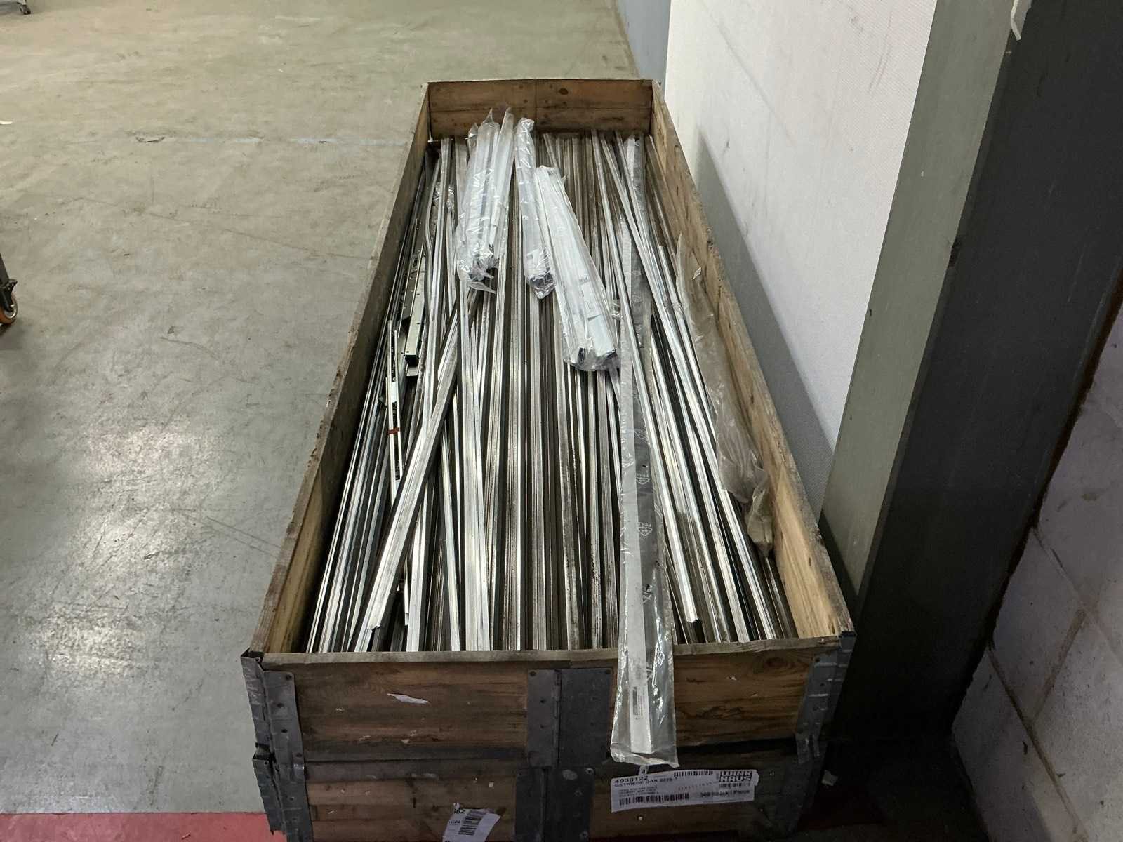 Mechanisme, aandrijving, aandrijfstang, meerpunts raamsluiting, schuifstang, circa 300 stuks Merk: Wink Haus Kleur: Zilver,zwart Lengte: 230cm Breedte: 2.5cm Materiaal: Aluminium