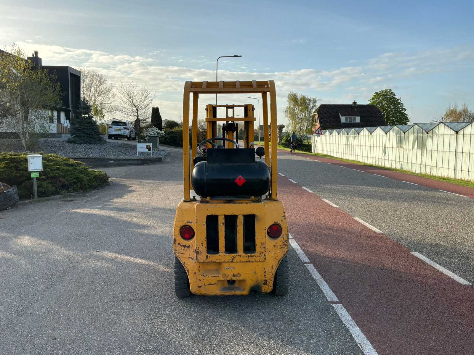 Starten en lopen en goed functionerende machine. Merk: Datsun Type: FG10 Brandstof: LPG Mast: Duplex Soort band: Luchtbanden Aantal wielen: 4 Afgelezen urenstand: 5409 Duplex mast: true Hefvermogen: 1000kg Lepellengte: 1000mm Max. hefhoogte: 2700mm Luchtbanden: true Minimale doorrijhoogte: 1960mm Totale afmeting L: 3000mm Totale afmeting Breedte: 1040mm Totale afmeting Hoogte: 1960mm LPG: true