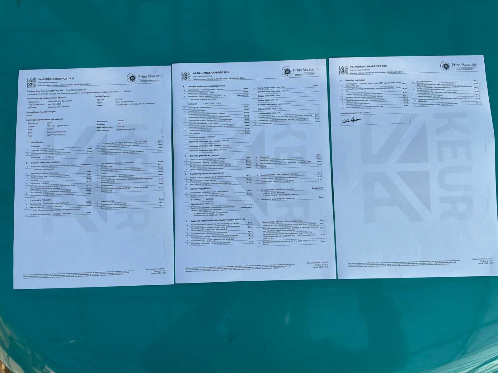 Afkomstig uit de lease, uitgevoerd met bluespot verlichting en ergonomische stoel, Lafis/Atlet is een merk van de Uni Carriers groep die ook de merken Mitsubishi, Nissan en TCM produceren. Merk: Lafis Type: UND140DTFVXF615 Bouwjaar: 2016 Serienummer: UND205488/01S Brandstof: Elektrisch Mast: Triplex Afgelezen urenstand: 8975 Accu lader: true Free-lift: true Side-shift: true Triple mast: true Eigen gewicht: 3360kg Hefvermogen: 1400kg Lepellengte: 1000mm Max. hefhoogte: 6150mm Minimale doorrijhoogte: 2580mm Totale afmeting L: 2550mm Totale afmeting Breedte: 1130mm Totale afmeting Hoogte: 2580mm Elektrisch: true