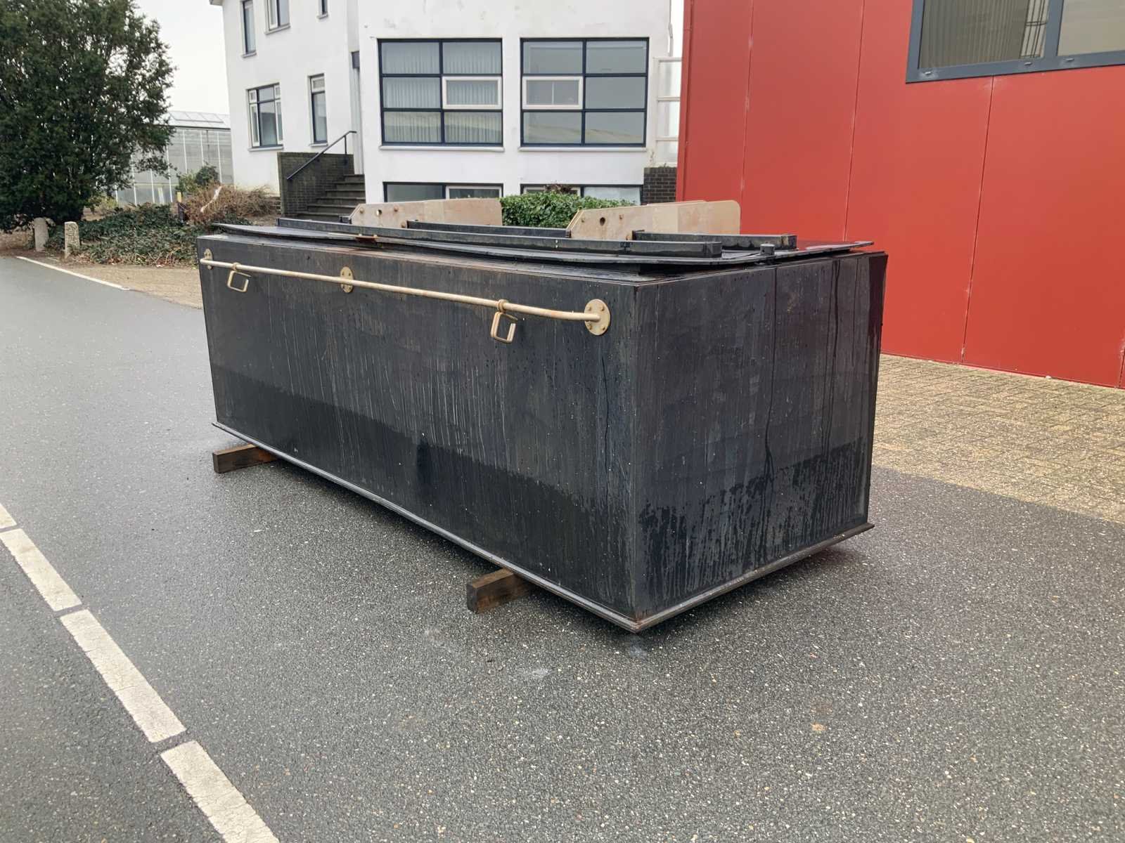 Dubbelwandige vloeistofdichte opslagtank, afmeting binnenzijde 300x100x100 cm. Kunststof: true Capaciteit.: 3000l Dubbelwandig: true Totale afmeting L: 3230mm Totale afmeting Breedte: 1260mm Totale afmeting Hoogte: 1050mm