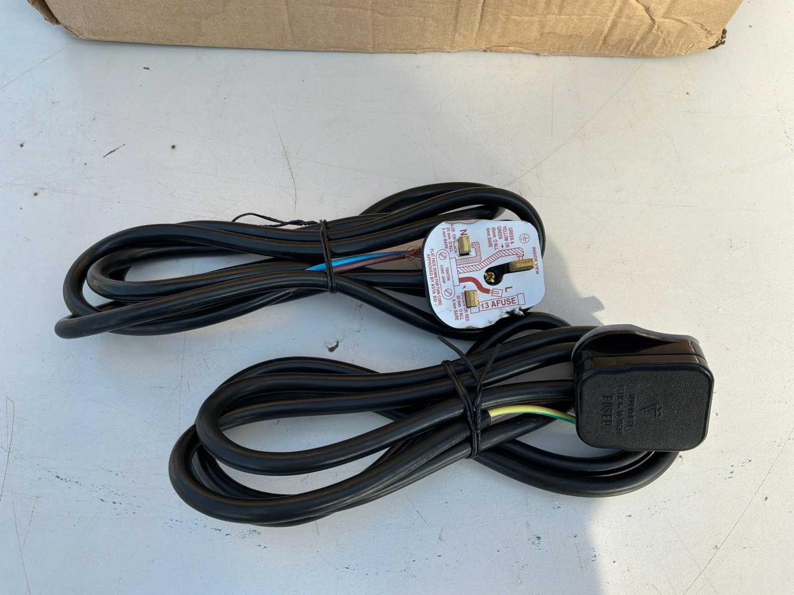 Doos met 50 stuks aansluitsnoer, dikte kabel 3x1,5 mm2 met geaarde Engelse stekker. Gewicht: 12kg Lengte: 160cm