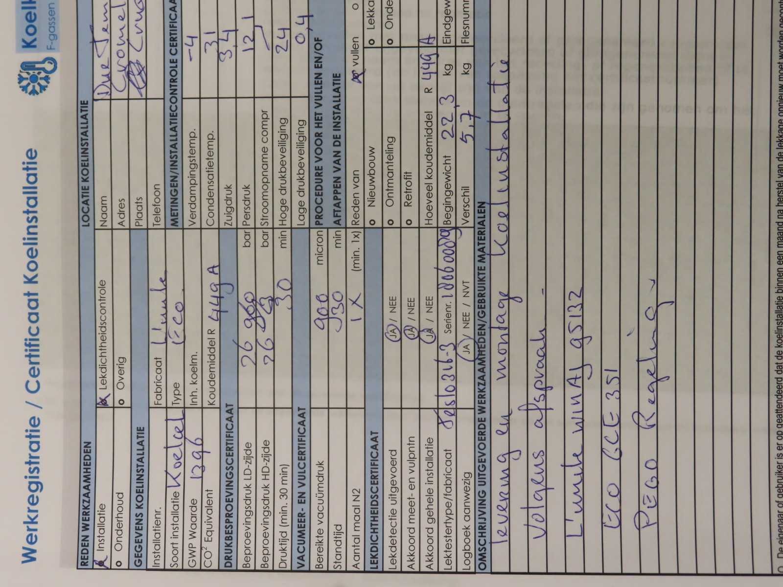 Bestaande uit koelcel (ca 430x185 cm binnenmaat, zonder eigenvloer) en vriescel (ca 330x185 cm binnenmaat - met eigen vloer) totale gecombineerd buitenmaat: circa: 260x800x210 cm (hxlxd), voorzien van compressor. Dient te worden afgepompt door gecertificeerd STEK monteur. Voorzijde voorzien van tegelwand, deze mag worden verwijderd indien noodzakelijk, elektra en leidingwerk dient professioneel te worden afgedopt. De locatie dient opgeruimd achter gelaten te worden Bouwjaar: 2024