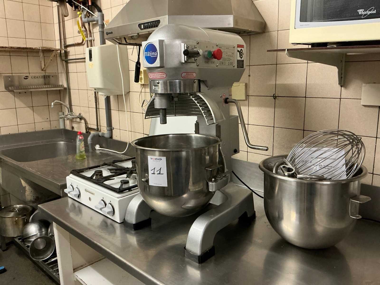 2x rvs mengkom; 3x klopper; 1x kneedhaak; 750 Watt Merk: Maxima Type: 09300165 Serienummer: 23659-2312062 Aansluiting: 230V Eigen gewicht: 72kg Totale afmeting L: 600mm Totale afmeting Breedte: 450mm Totale afmeting Hoogte: 800mm