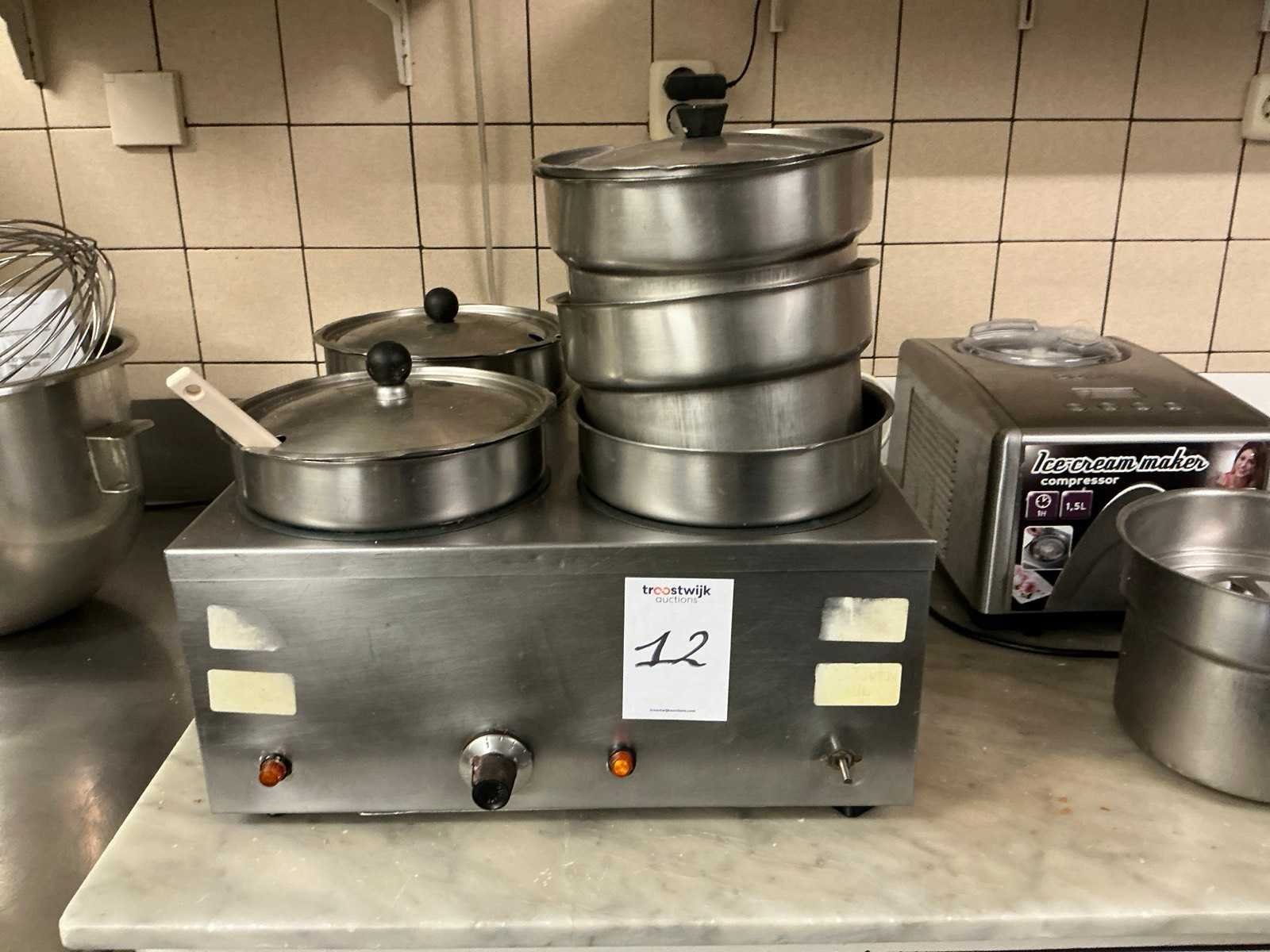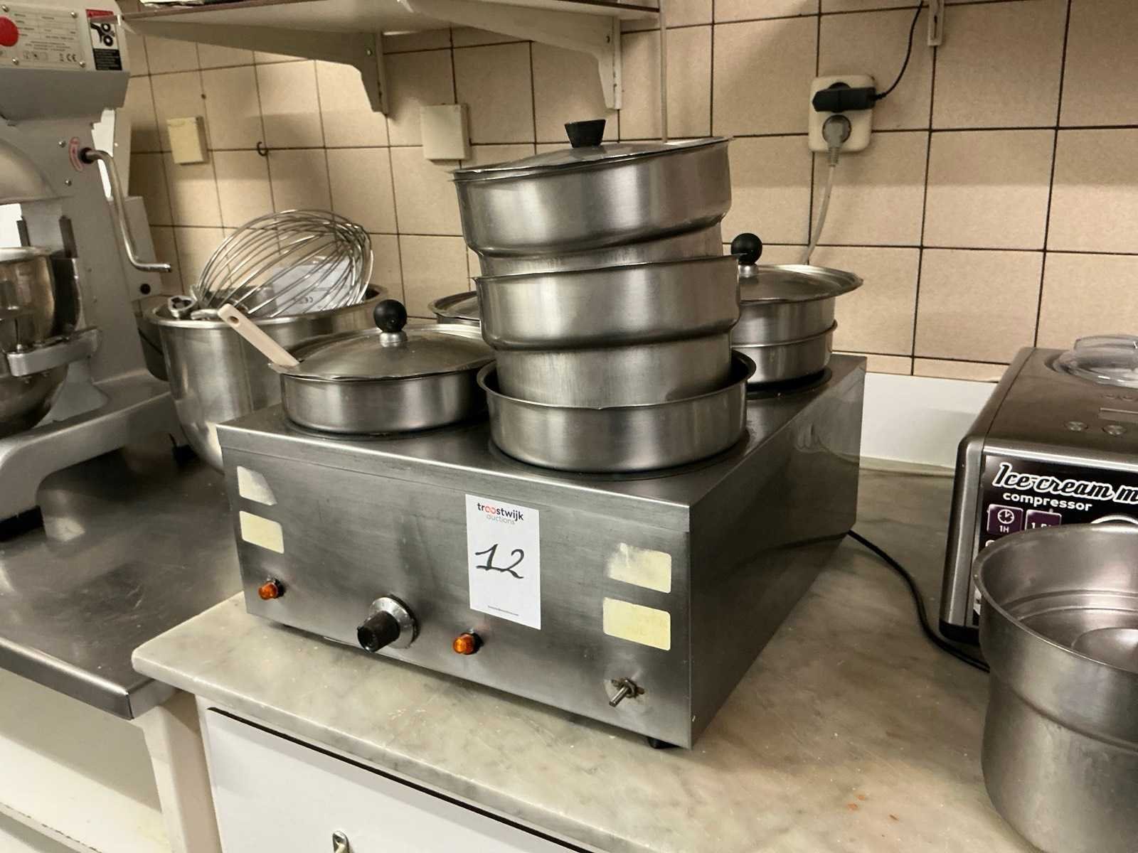Met 8x diverse rvs ketels Totale afmeting L: 50cm Totale afmeting Breedte: 50cm Totale afmeting Hoogte: 22cm Materiaal: Rvs Vrijstaand: true Rvs: true Regelbare thermostaat: true Aansluiting: 230V