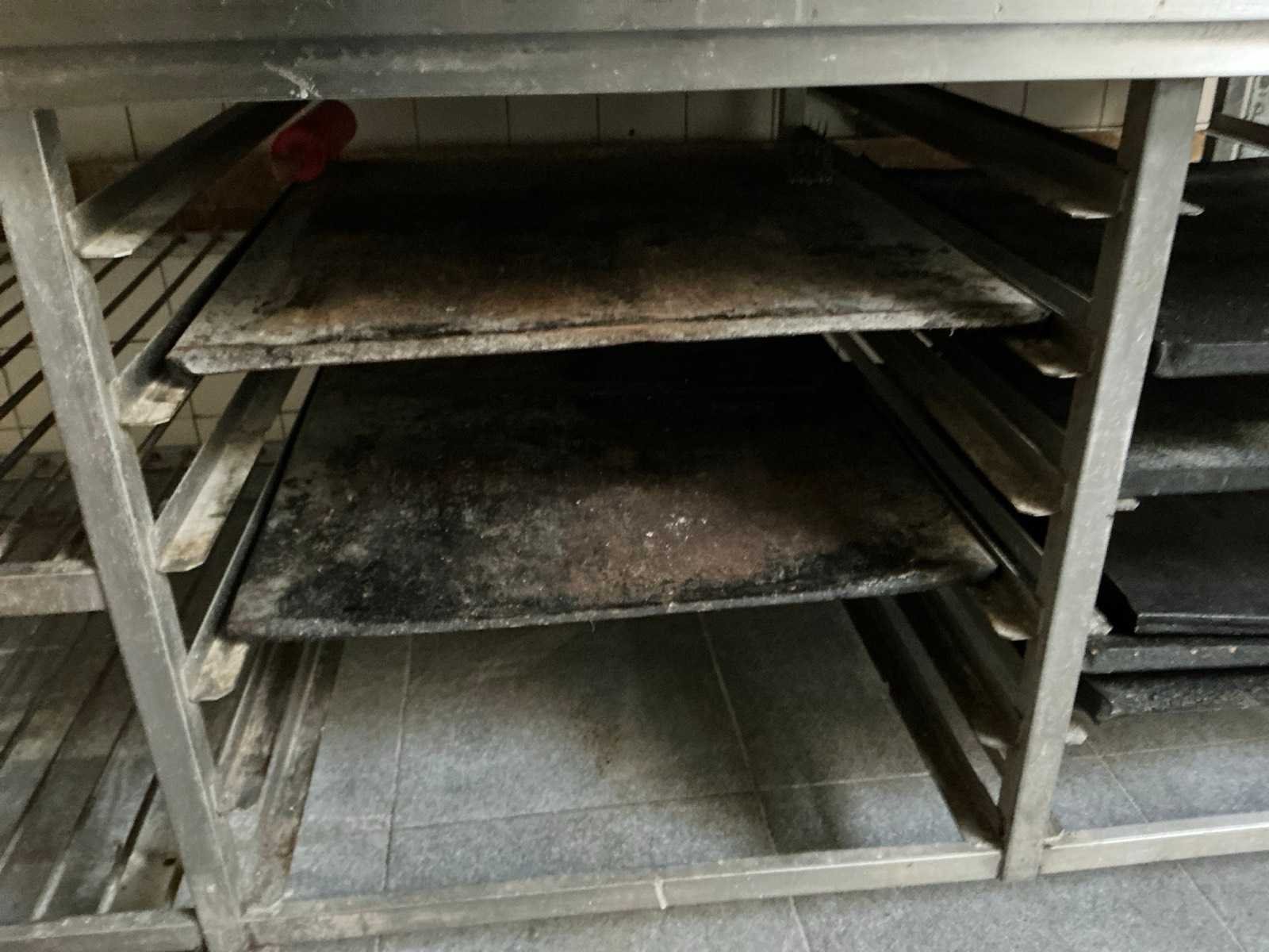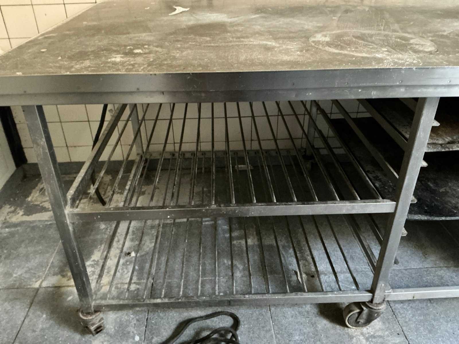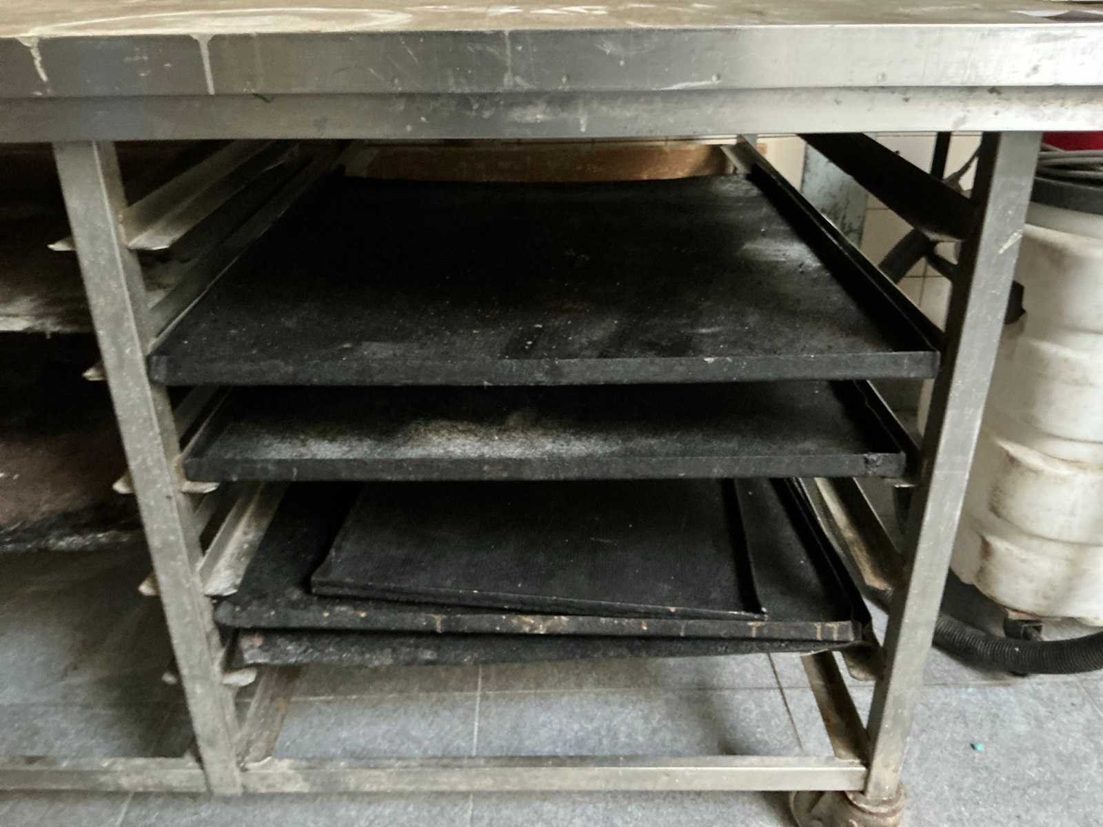 Voorzien van 2x onderlegger en 6x bakplaat; met 6x zwenkwiel Materiaal: Rvs met kunststof bovenblad Totale afmeting Breedte: 1210mm Totale afmeting L: 2610mm Totale afmeting Hoogte: 940mm