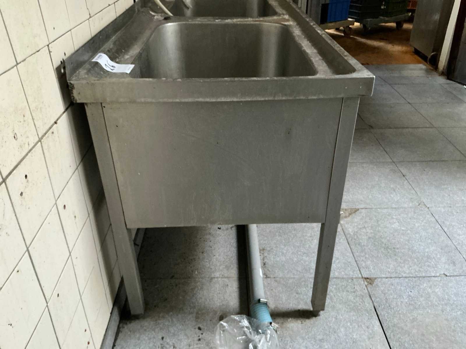 Achterzijde opstand 5cm Materiaal: Rvs Aantal spoelbakken: 2pcs Afmeting spoelbak: 76cm Rvs: true Lengte: 240cm Breedte: 70cm Hoogte: 85cm