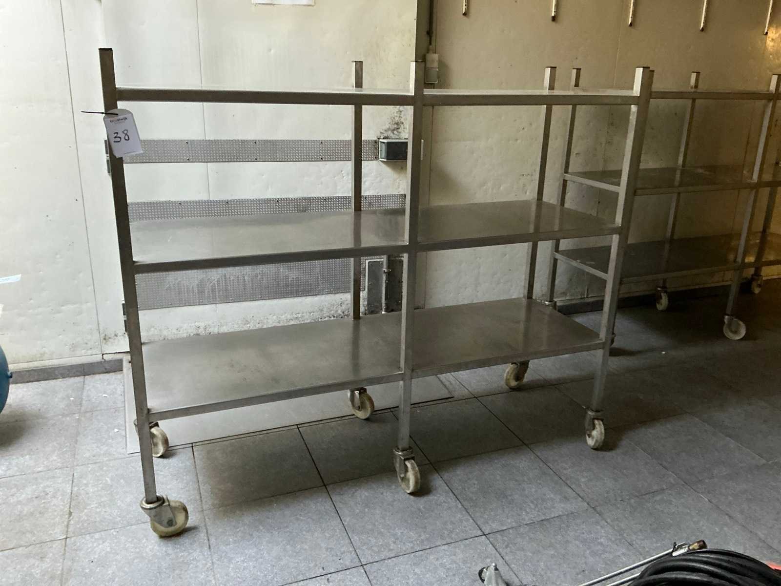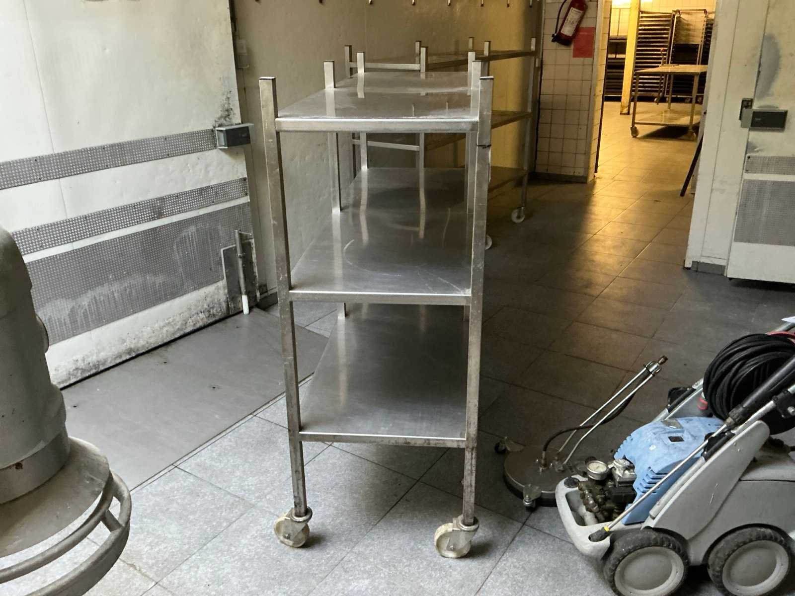 Lengte: 185 Breedte: 60 Hoogte: 156 Materiaal: Rvs Aantal etages: 3 Aantal zwenkwielen: 6