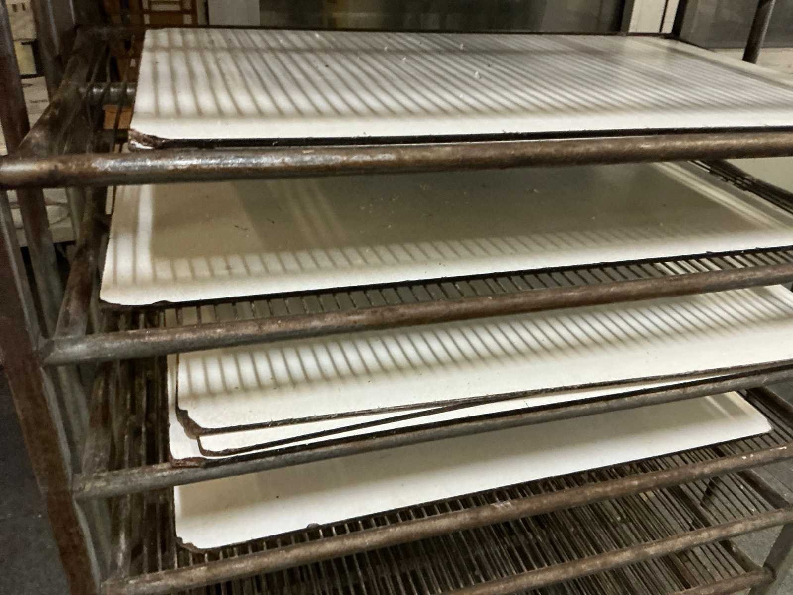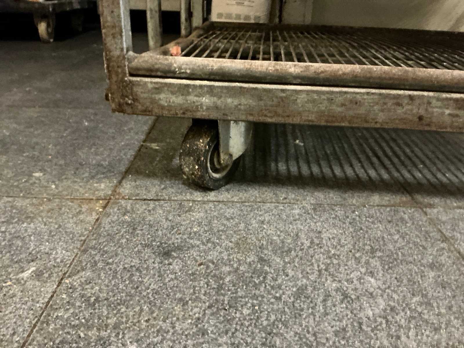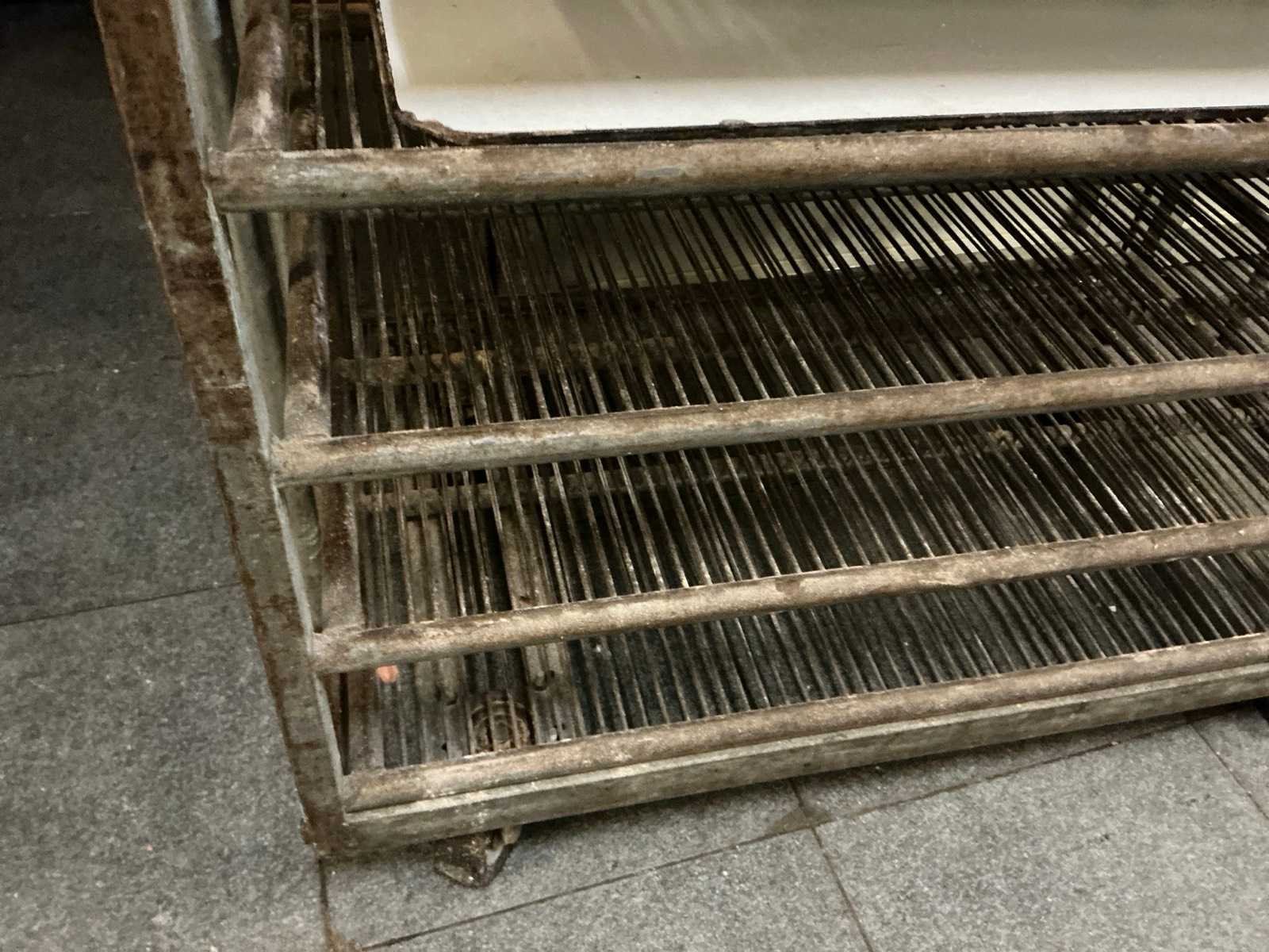 Metalen kar met 10 leggers en voorzien van zwenkwielen ; ijzers bovenop horen niet tot deze kavel Totale afmeting L: 1180mm Totale afmeting Breedte: 680mm Totale afmeting Hoogte: 1780mm