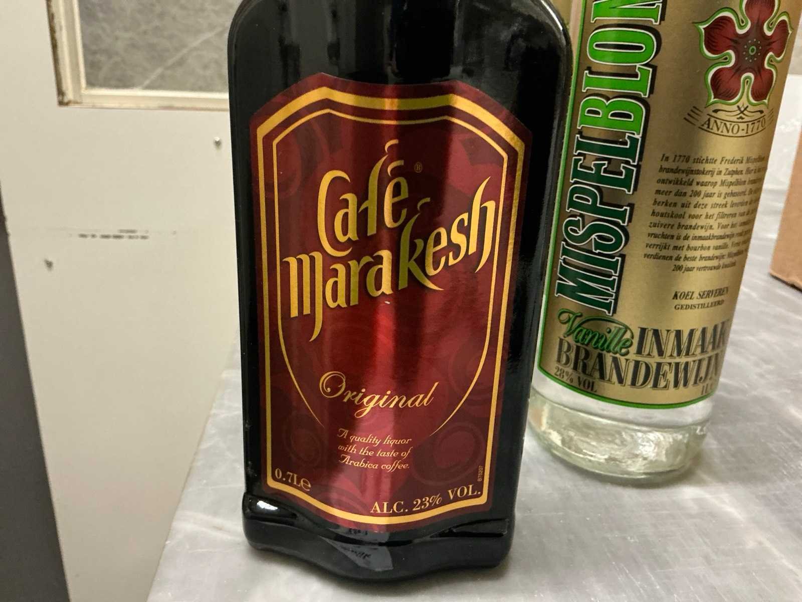 9x fles Cafe Marakesh; 0,7l; 2x fles Mispelblom inmaak brandewijn 1l