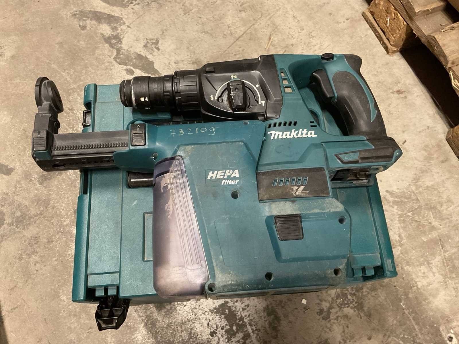 Incl. stofafzuigset, type DX01. Merk: Makita Type: BHR243 Accuspanning: 18V Aantal accu's: 0 Boor-/breekhamer: true SDS fitting: true Met koffer: true