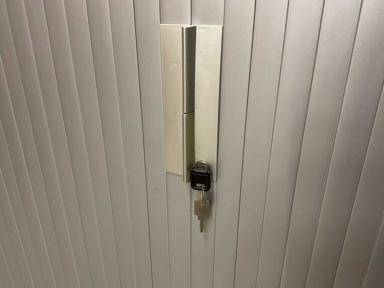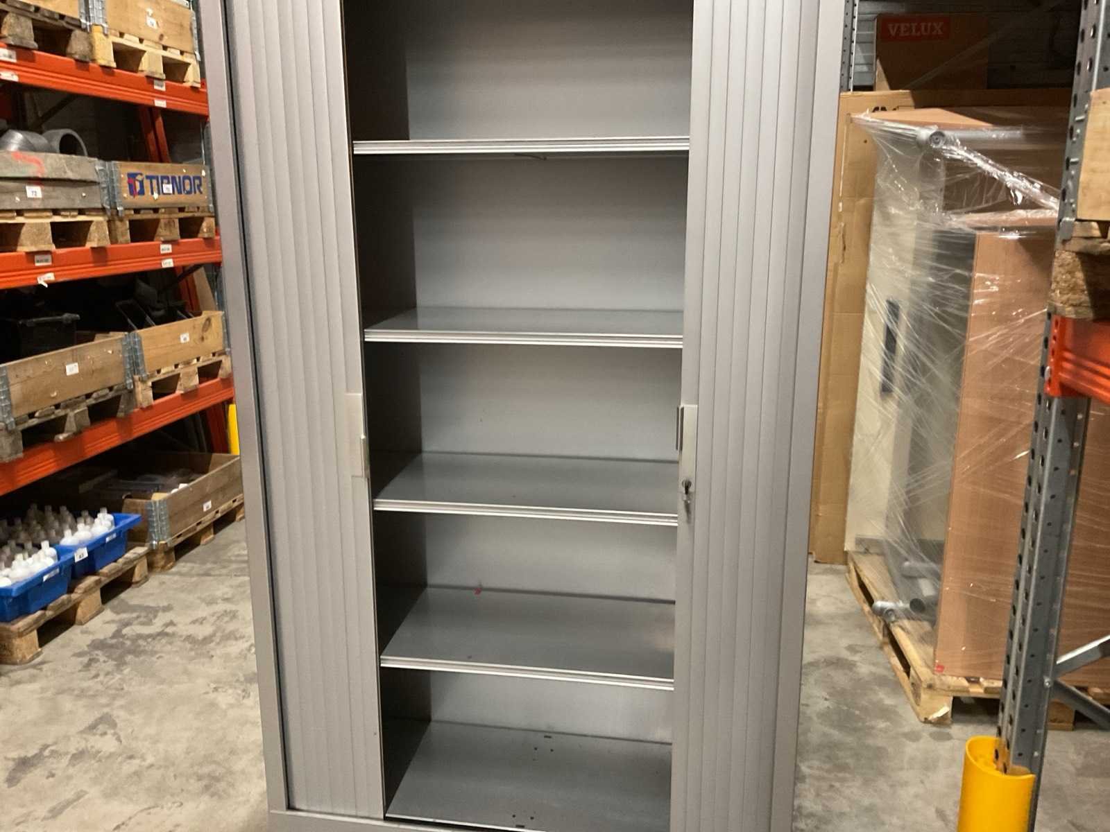 Met kunststof lamellen en 4x legbord. Materiaal: Metaal