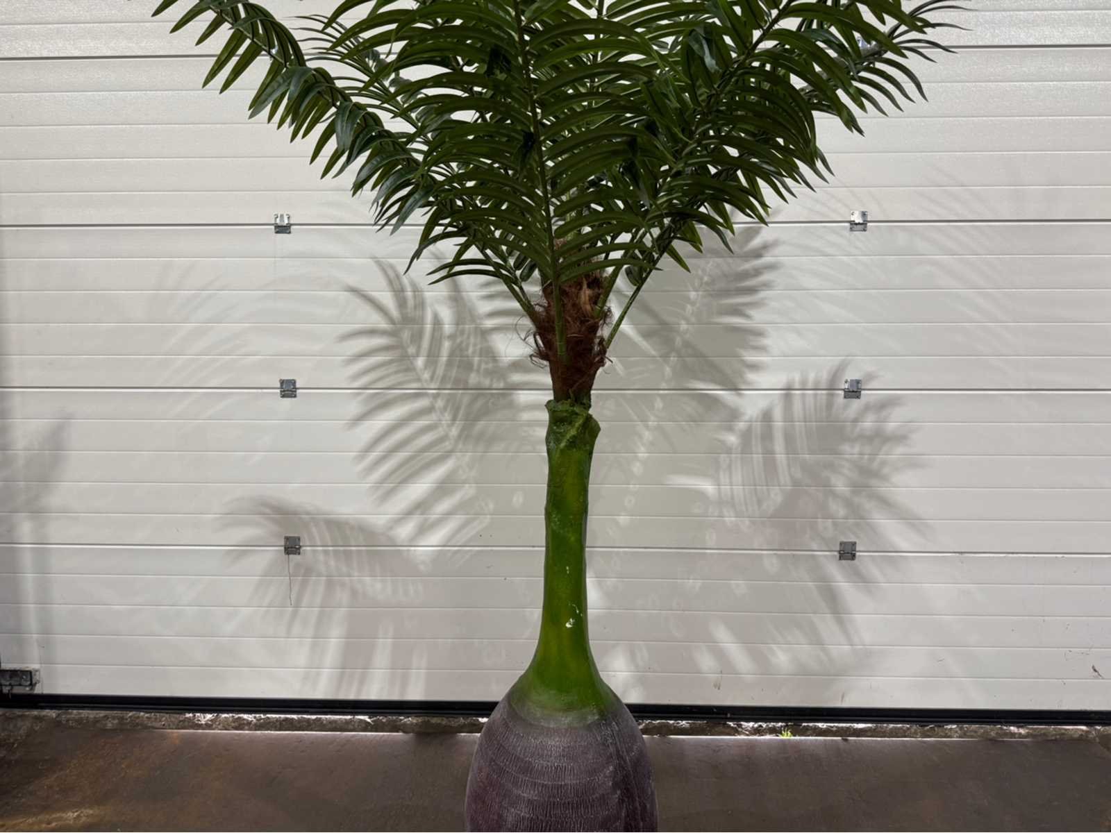 Ongebruikt; stam bestaat uit 1 gedeelte; bladeren kunnen gedemonteerd worden Type: Palmboom Hoogte ca.: 250cm