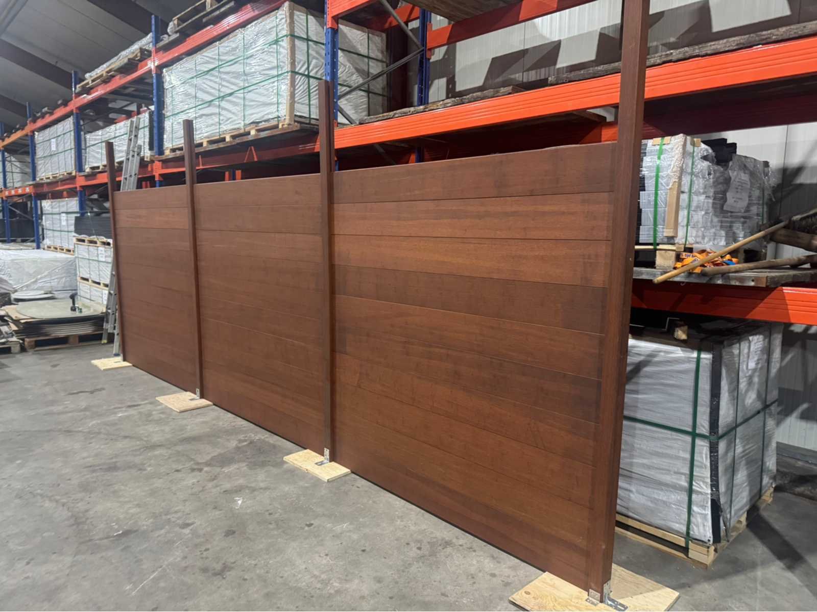 Bamboe geperste schutting; zeer lange levensduur; het product is onder hoge druk geperst; palen zijn 70x70 mm; lengte van de palen is 2500 mm; tussen planken zijn 1950 mm lang en 200 mm; plank dikte is 20 mm; dit kavel bestaat uit 7 palen en 60 planken; alles is ongebruikt; Merk: Acapulco Model: Fence