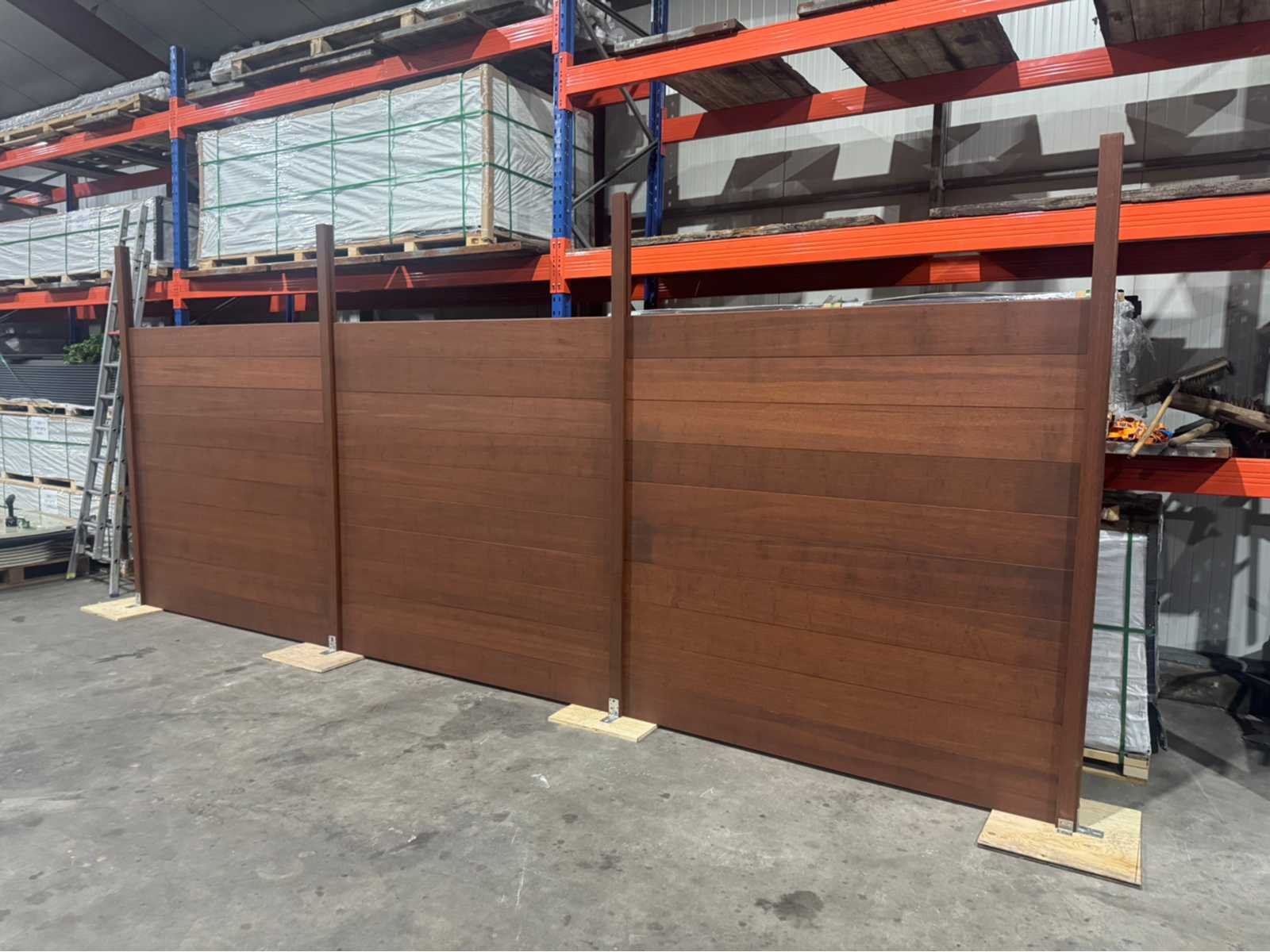 Bamboe geperste schutting; zeer lange levensduur; het product is onder hoge druk geperst; palen zijn 70x70 mm; lengte van de palen is 2500 mm; tussen planken zijn 1950 mm lang en 200 mm; plank dikte is 20 mm; dit kavel bestaat uit 4 palen en 30 planken; alles is ongebruikt; Merk: Acapulco Model: Fence