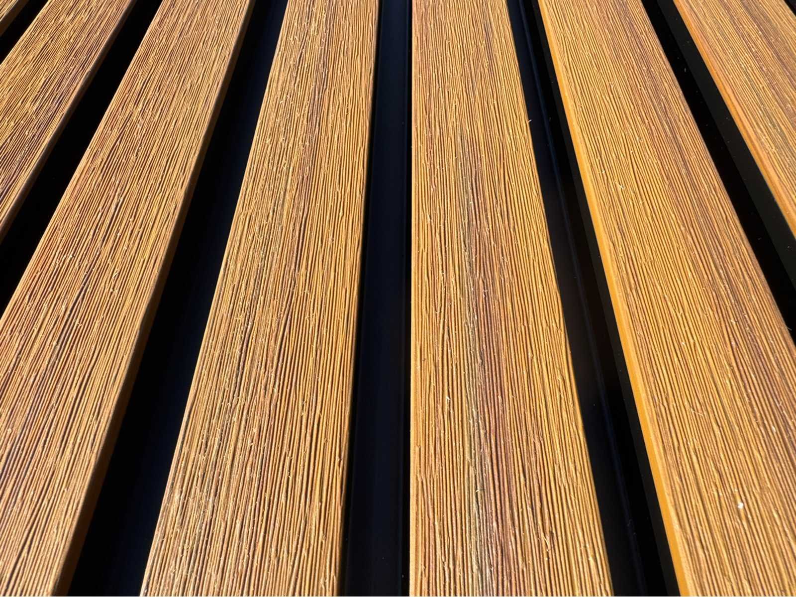 Co-extrusion wpc; ongebruikt; breedte ca 219mm; lengte ca 2900mm; Model: 5G teak Kleur: Black + Iquitos Jatoba Lengte: 290cm