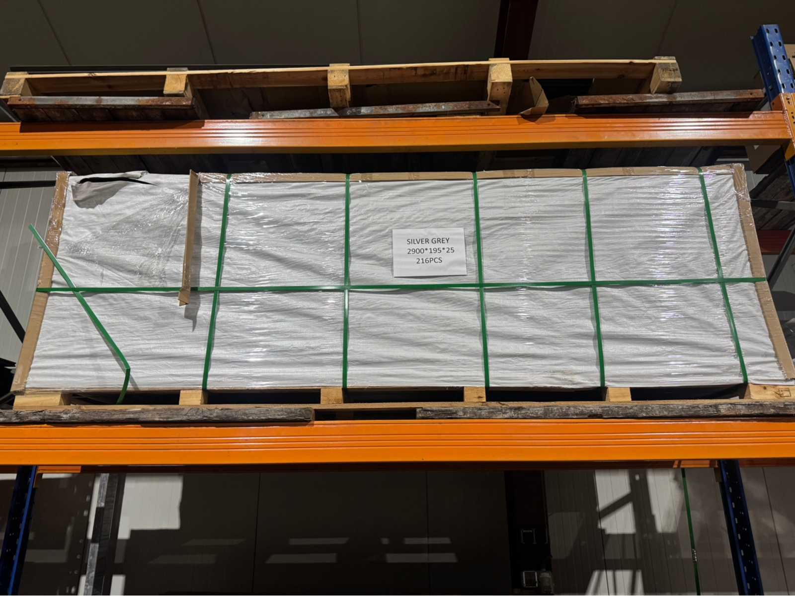 Lengte 2900mm; breedte 195mm; dikte ca 25mm; het gaat bij deze kavel om een volle pallet Kleur: Silver-grey