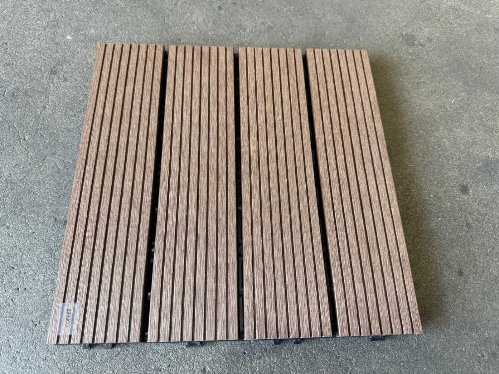 1 tegel is 0,09 m2; tegels zijn koppelbaar; dit kavel bestaat uit 111 stuks tegels Kleur: Coffee Lengte: 300mm Breedte: 300mm Dikte: 20mm