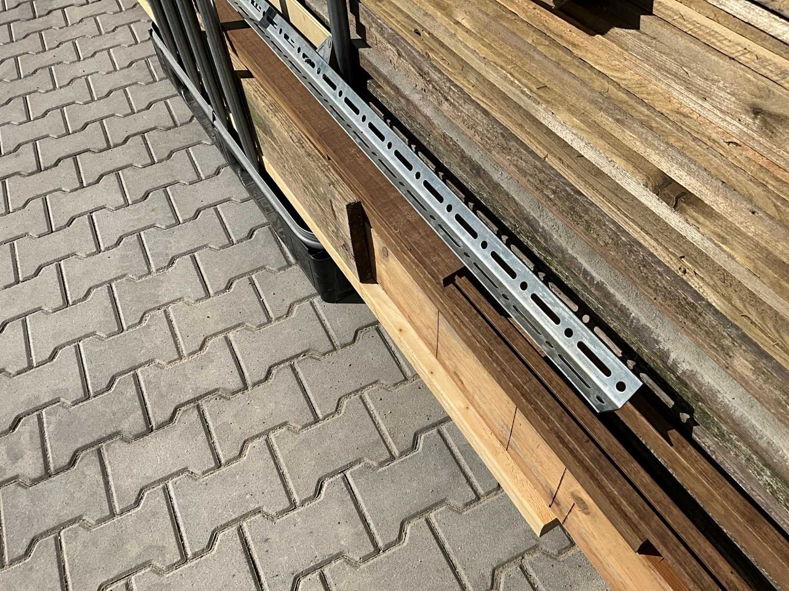 Diverse houten balken en planken, 3 delen roldeur met diverse onderdelen Lengte: 5100mm Breedte: 800mm Hoogte: 1200mm