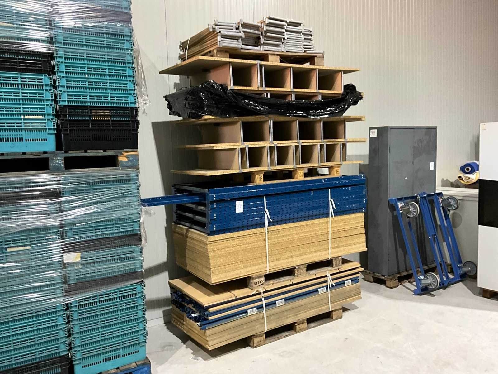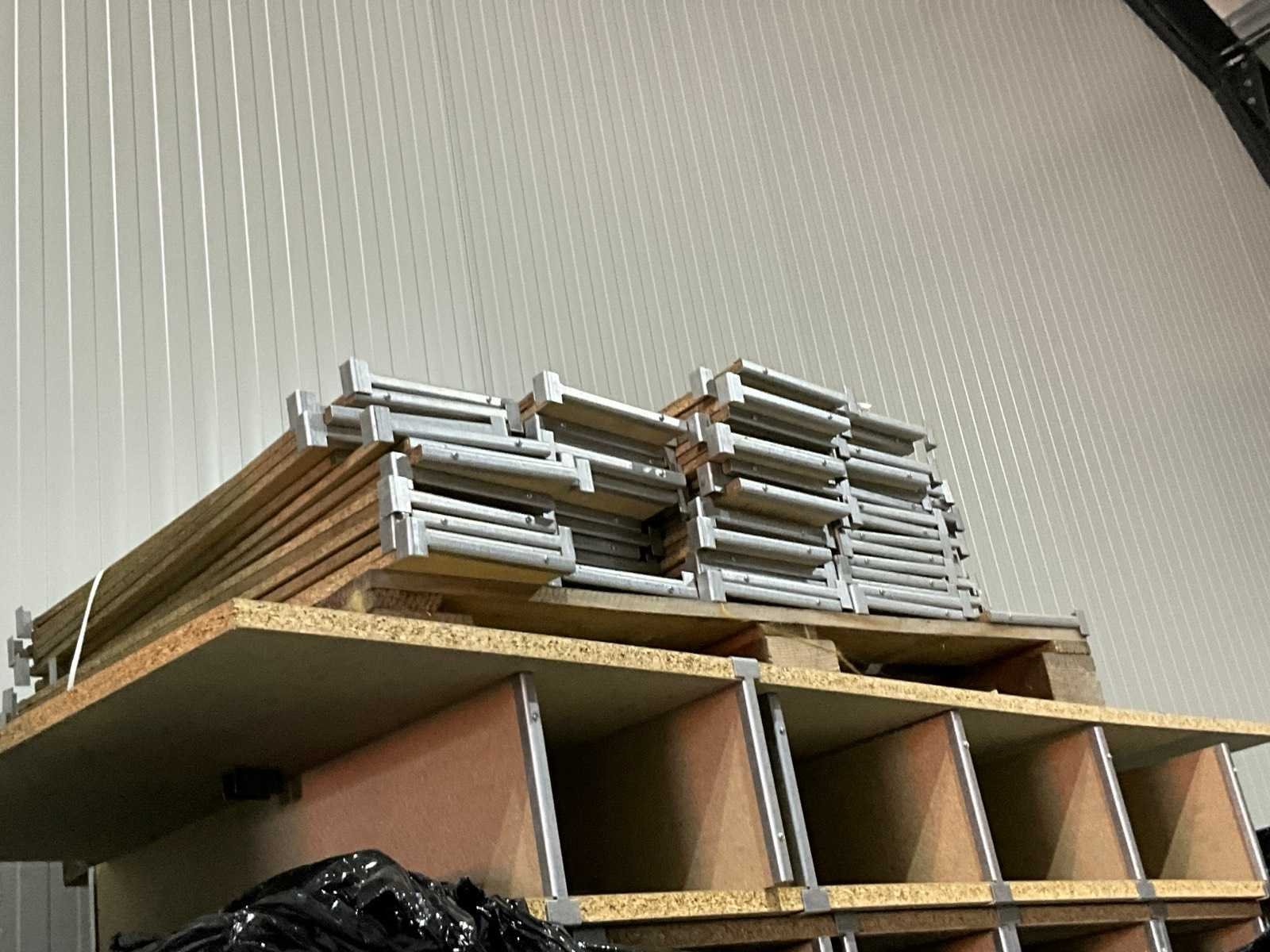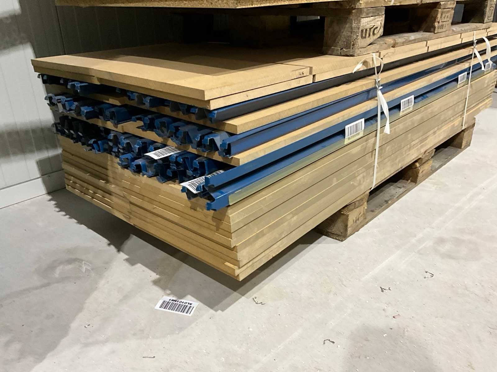 Staanders 2000mm hoog, 800mm diep, liggers 2m lang, 2 verschillende legborden, Aantal staanders: 8 Aantal liggers: 58 Aantal legborden: 57 Demontabel: true