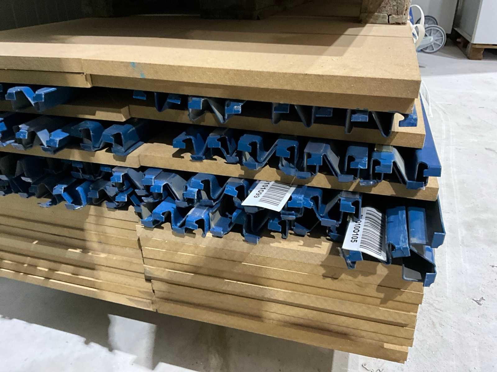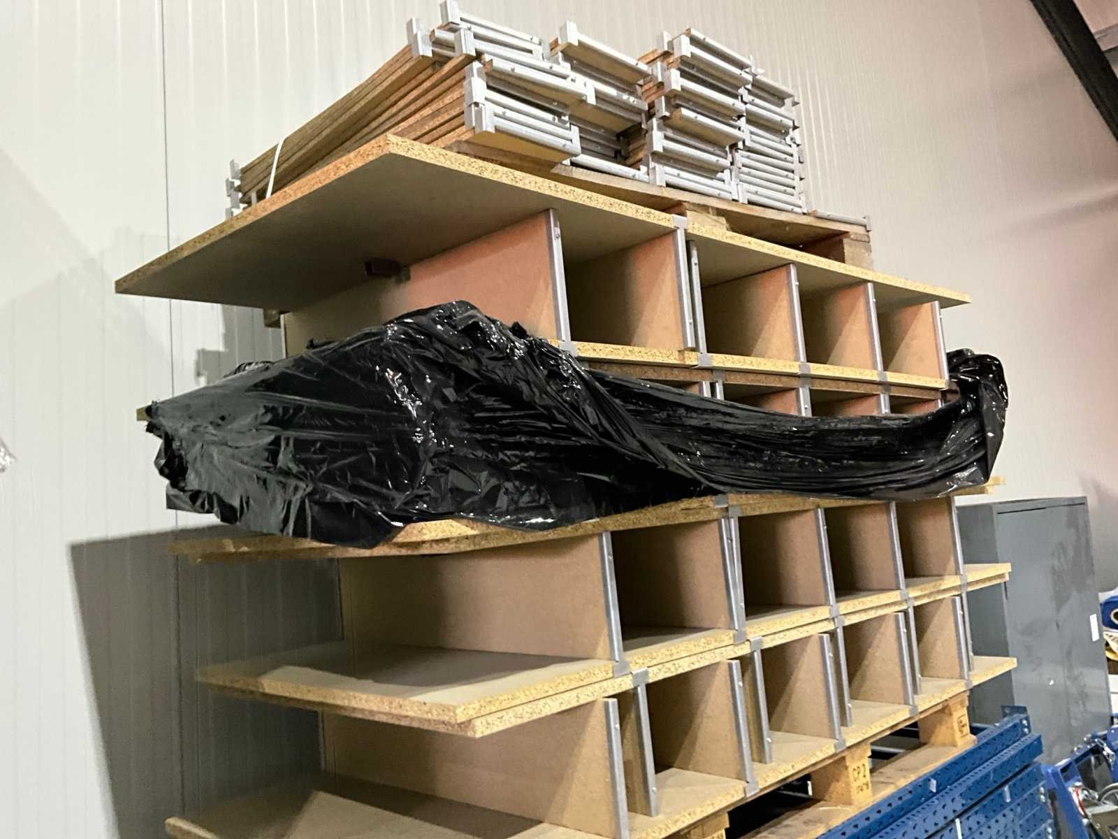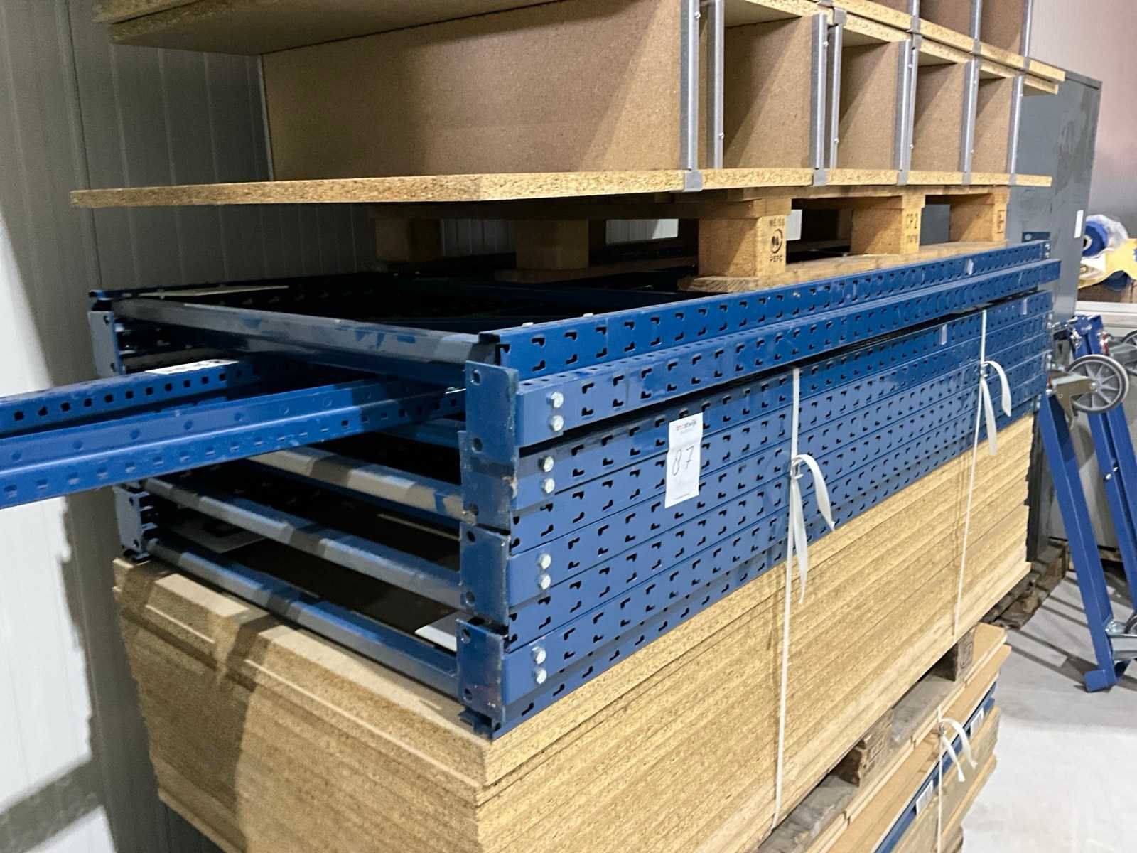 Staanders 2000mm hoog, 800mm diep, liggers 2m lang, 2 verschillende legborden, Aantal staanders: 8 Aantal liggers: 58 Aantal legborden: 57 Demontabel: true