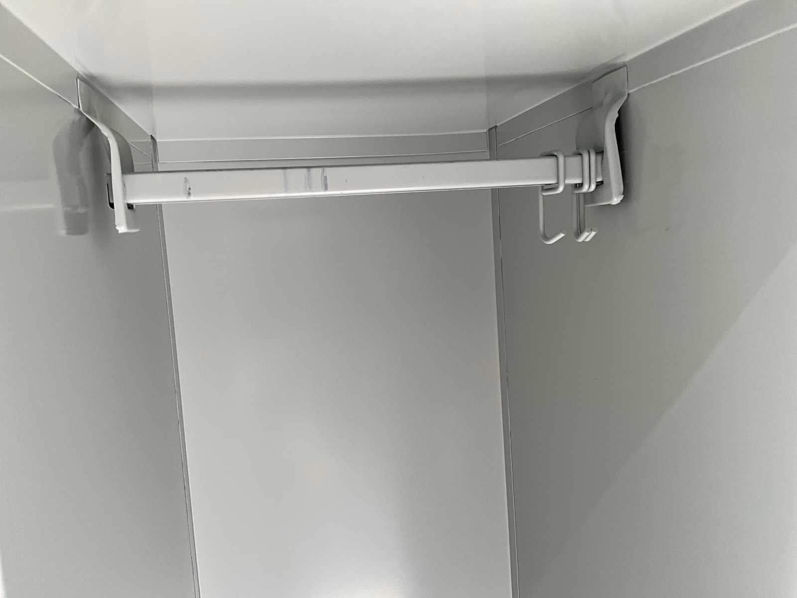 Met hangsloten afsluitbaar, geen sloten aanwezig Lengte: 50cm Breedte: 120cm Hoogte: 185cm Diepte: 48cm