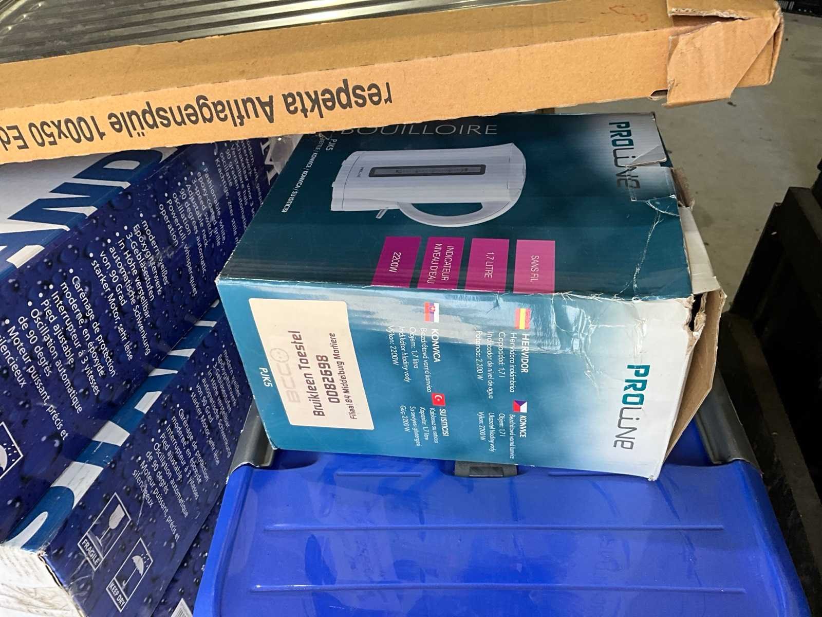 Ventilatoren, wasbak, waterkoker, handdoeken, luchtontvochtiger, elektrische kachel, zonder pallet