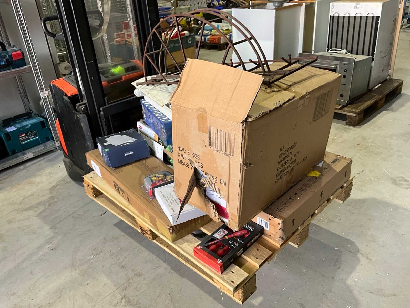 Ventilatoren, keter city box, kapstok, sleutel kluis, gereedschap, lamp met sensor, klapstoelen, zonder pallet