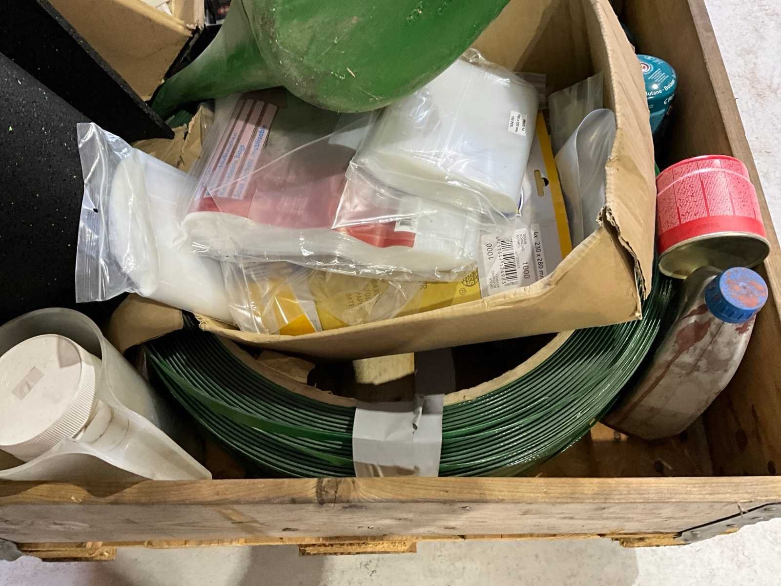 Butaan gasflesjes, zekeringen, omsnoerband, plastic zakken, gieter