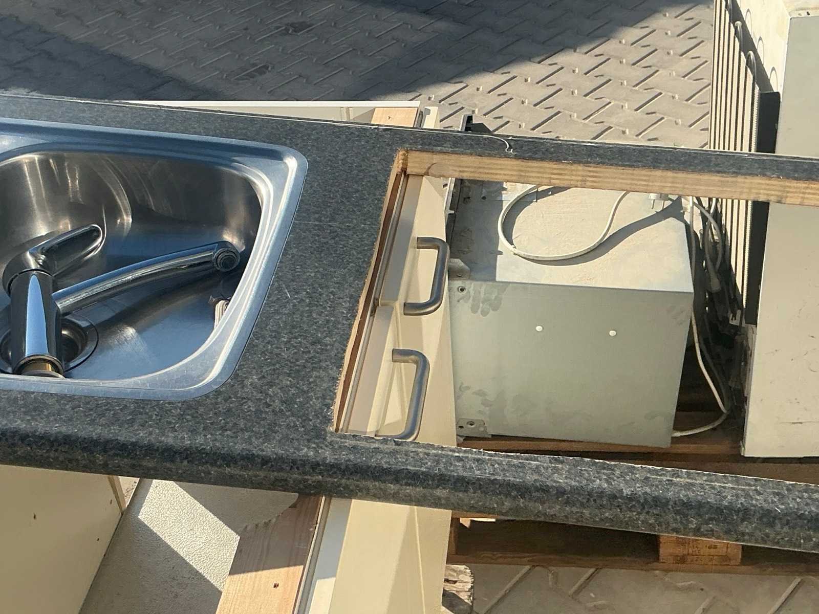 Bestaande uit 2x onderkast, 1x aanrechtblad(280cm), 1x mengkraan, 1x Siemens combimagnetron en 1x Siemens inbouwkoelkast, op 2 pallets