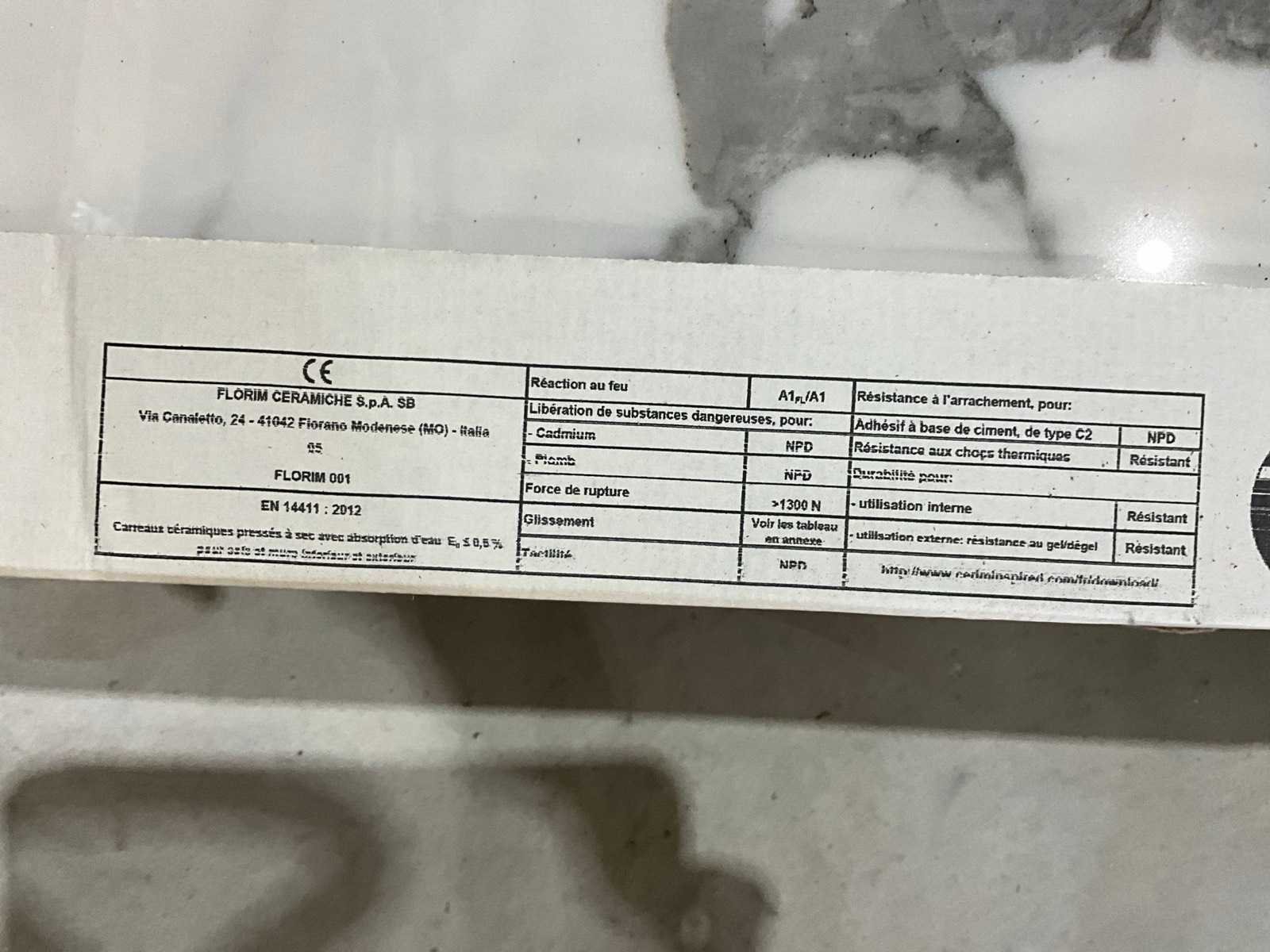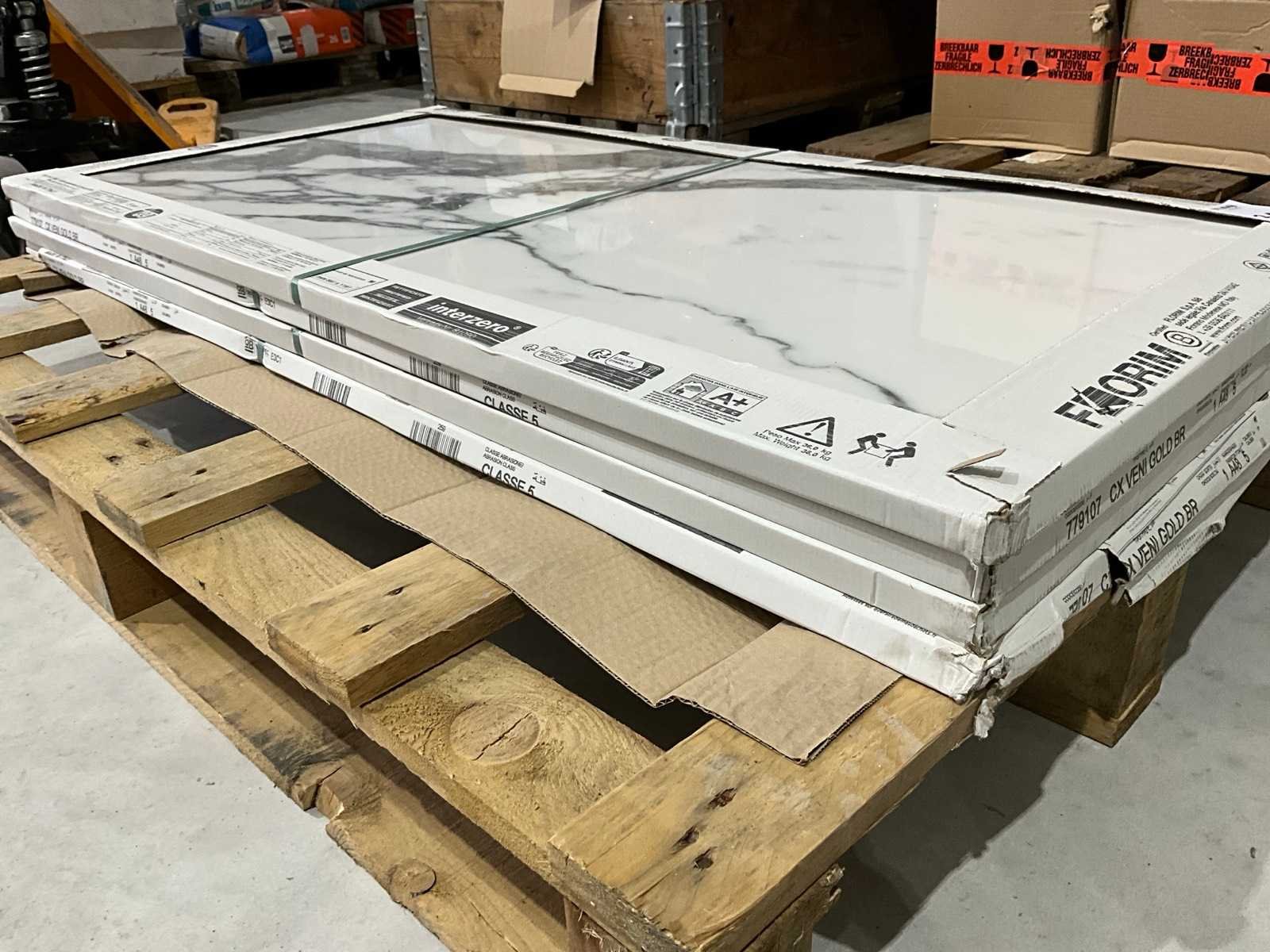 Merk: Florim Lengte: 1200mm Breedte: 600mm Dikte: 6mm Gewicht: 36kg Aantal m² per verpakking: 2.16m² Aantal pakken: 4 Totaal oppervlakte: 8.6m² Totaal gewicht: 144kg