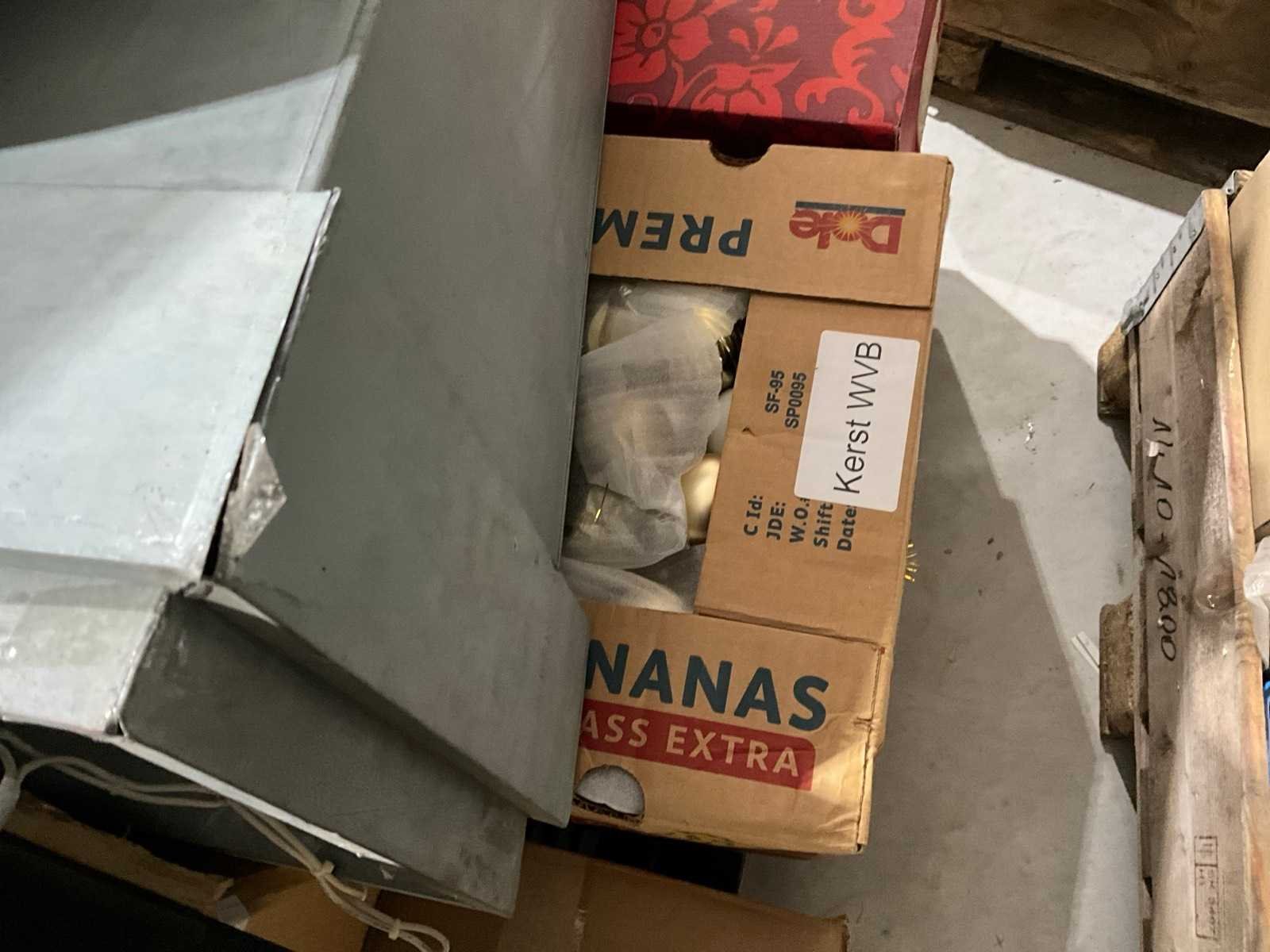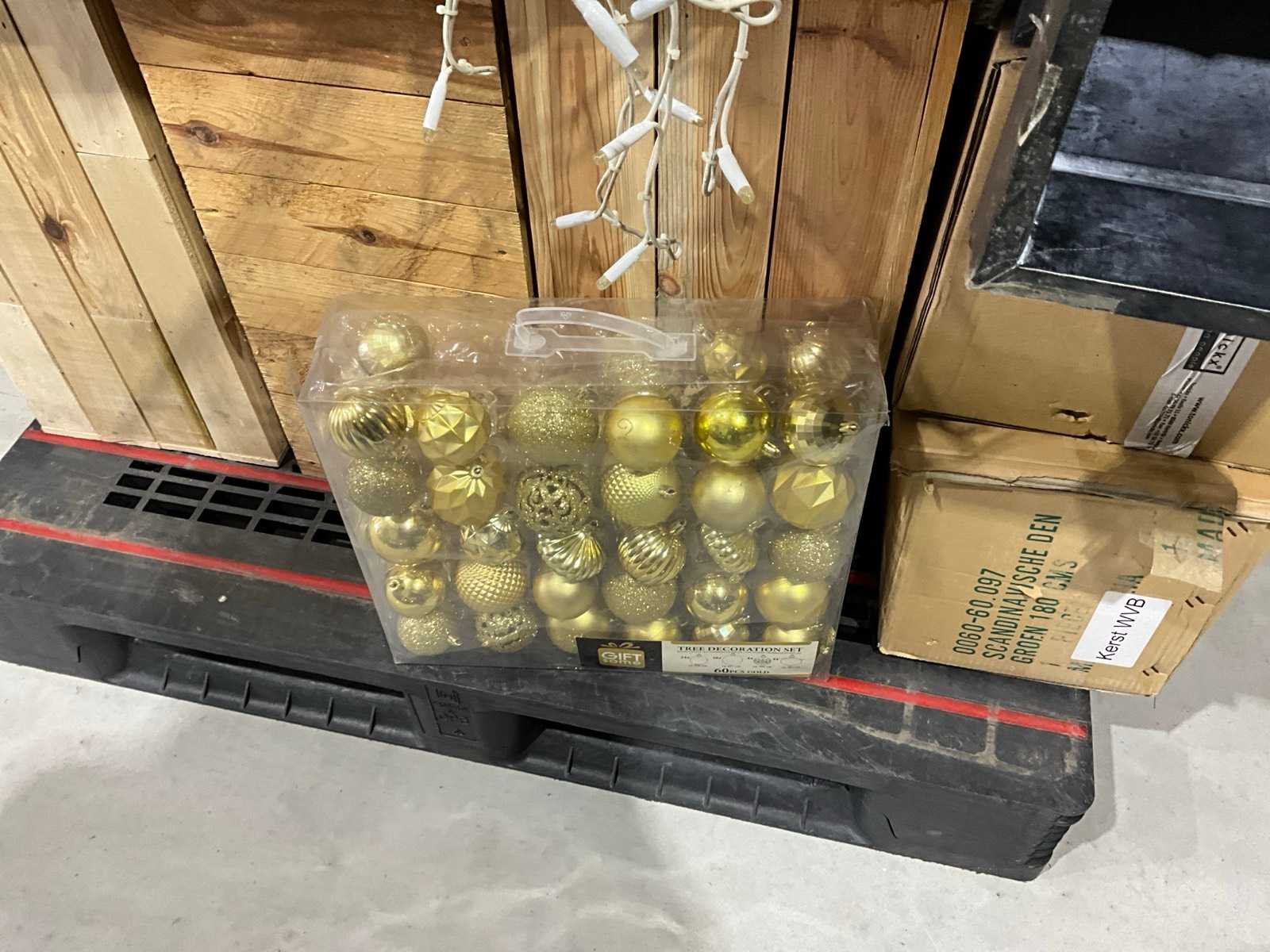 Kerstballen, lampjes, bloembakken, zonder pallet