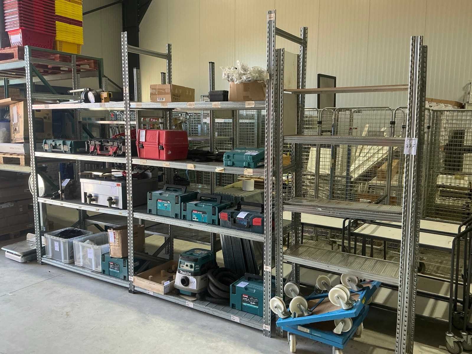 Bestaande uit 1x stelling(305x61x250cm.) 1x stelling(98x33x225cm.) en 1x stellin(208x50x230cmj, Zonder de inhoud,