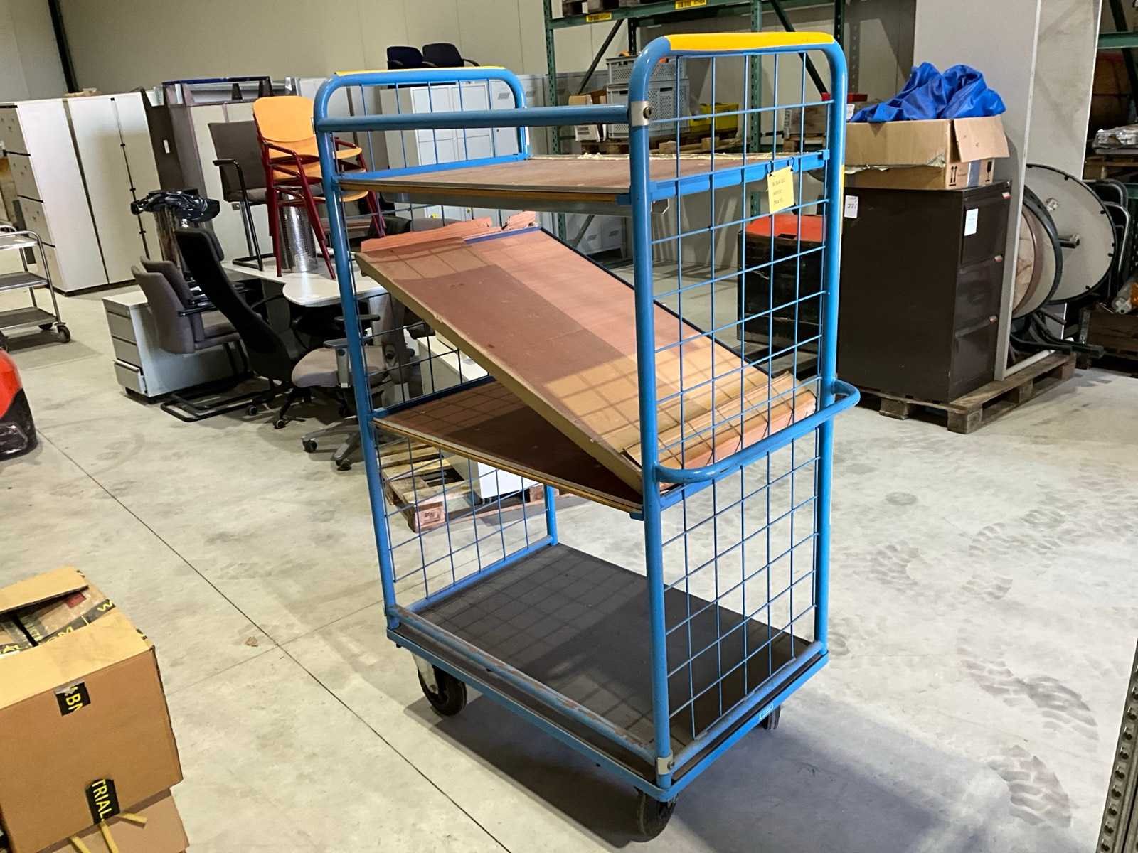 Merk: Eurokraft Lengte: 1150 Breedte: 690 Hoogte: 1750 Aantal etages: 3 Aantal zwenkwielen: 2