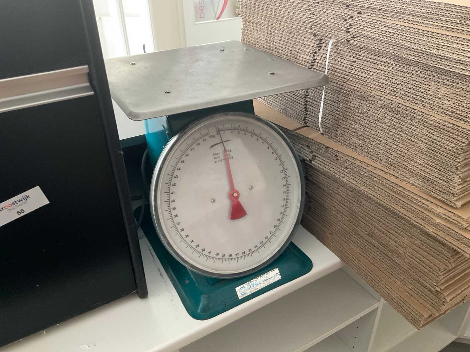 Partij diverse verpakkingsmaterialen met weegschaal en papiervernietiger