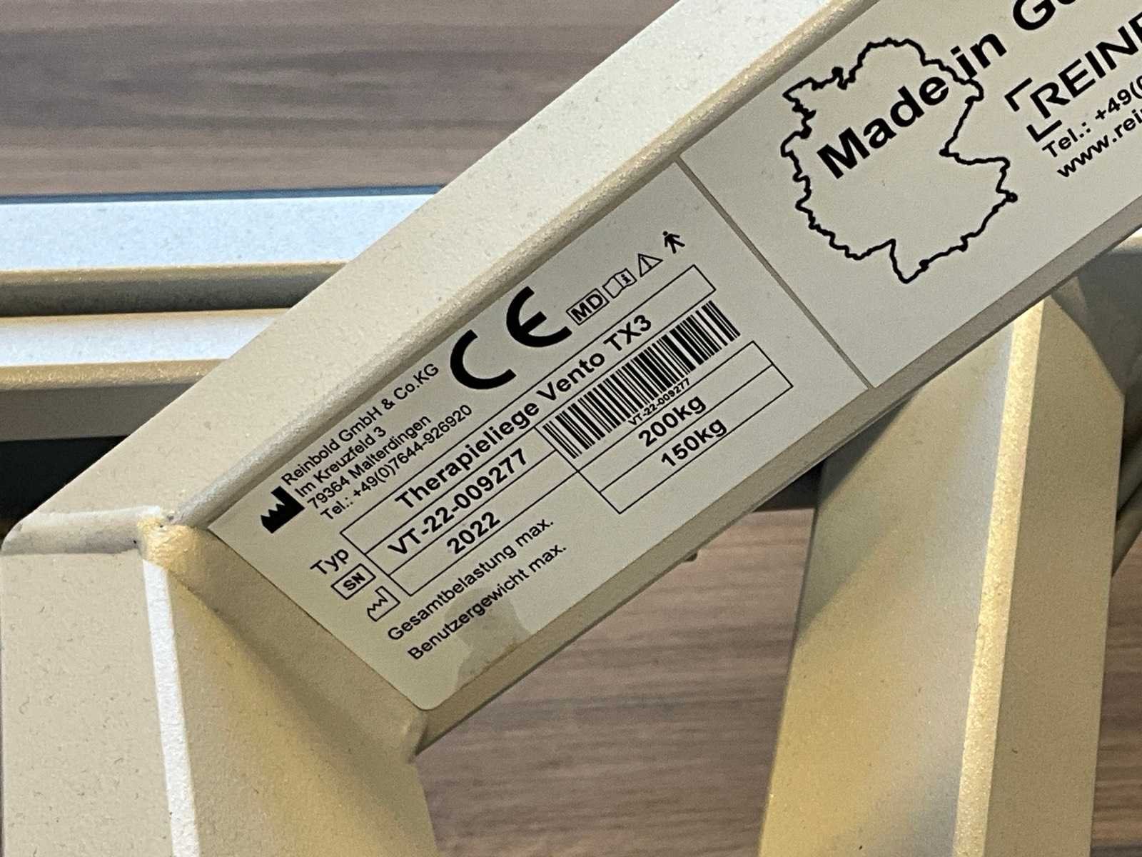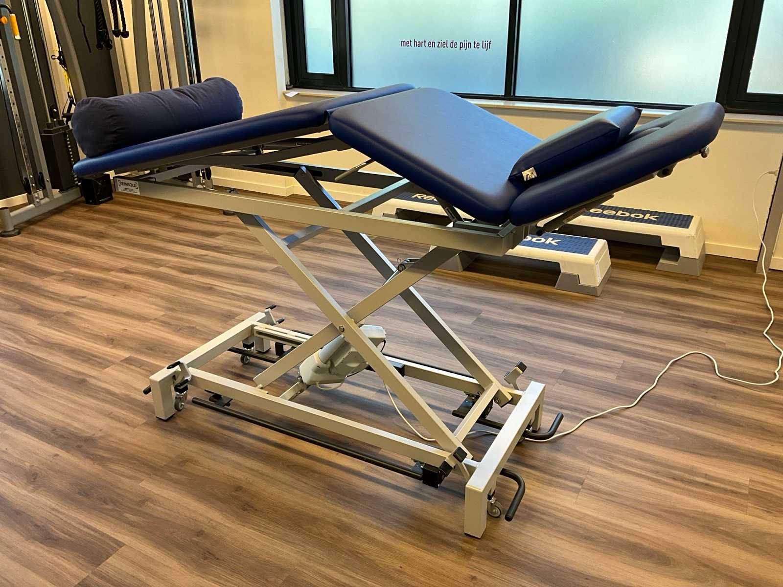 Maximale gebruikersgewicht: 150kg; eigen gewicht: 96kg; verrijdbaar; elektrisch verstelbaar; 230V; hoogte: 53/99cm Merk: Reinbold Model: Vento TX3 Lengte: 200cm Breedte: 65cm