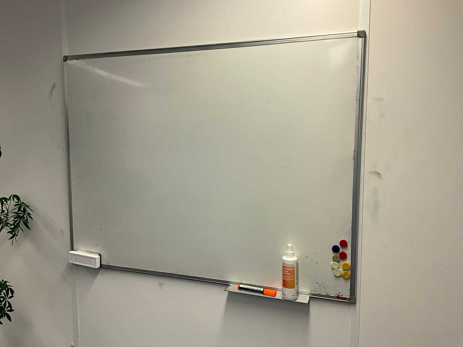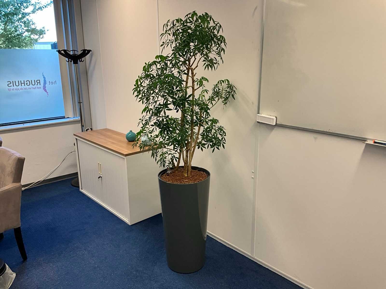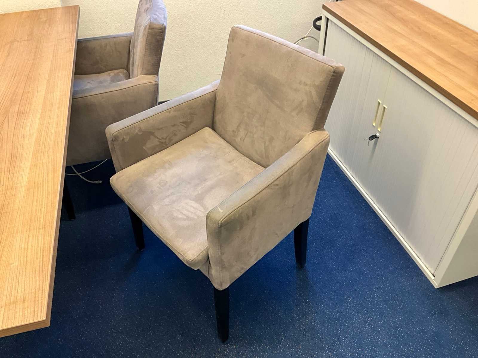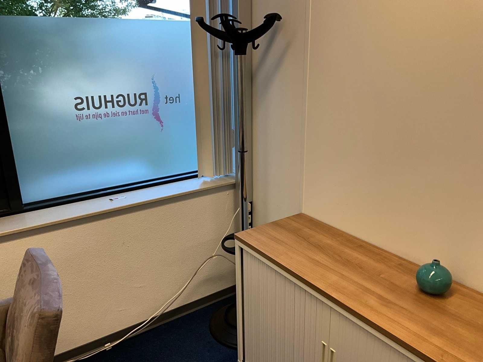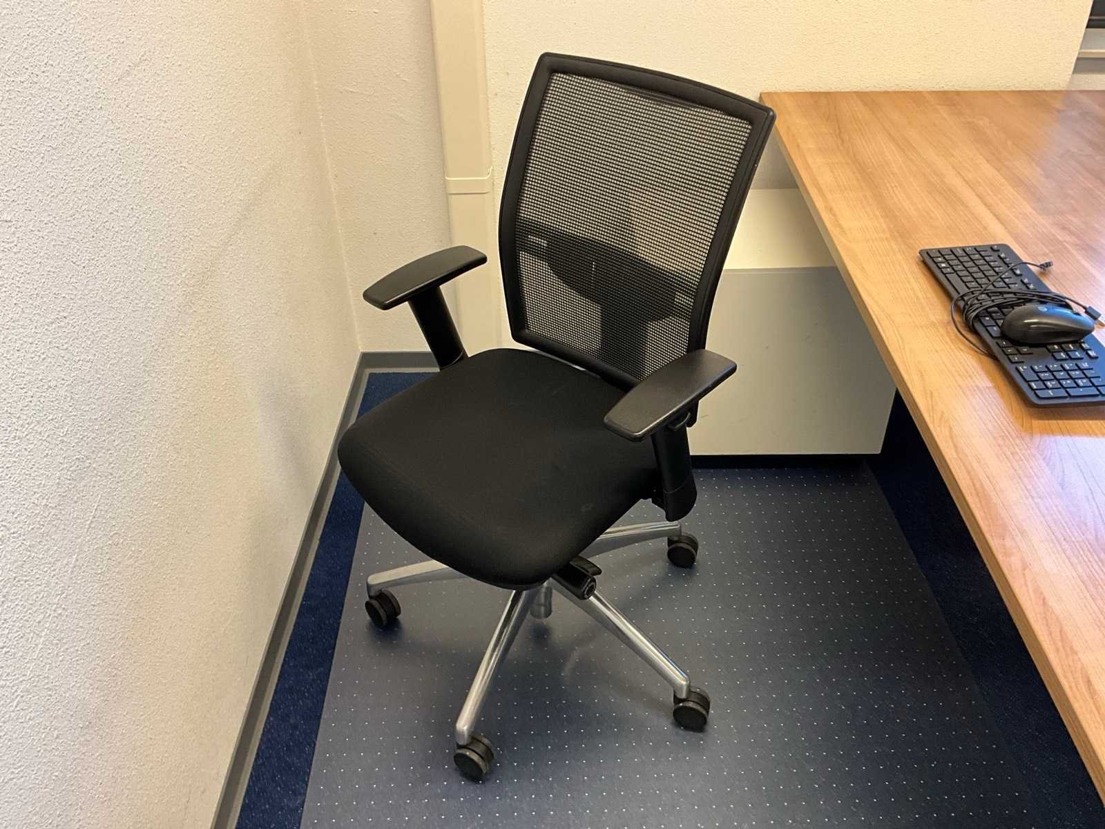 Bestaande uit inhoud kantoorruimte voorzien van onder andere: bureautafel 80x160cm in hoogte verstelbaar, ladeblok, bureaustoel, 2x De Arend eetkamerstoel, 2x vergaderstoel met sledeframe, roldeurkast H75xB120xD44cm, hydrocultuurplant in pot, bijzettafel, kapstok, wanddecoratie en whiteboard 90x120cm (wandgemonteerd)
