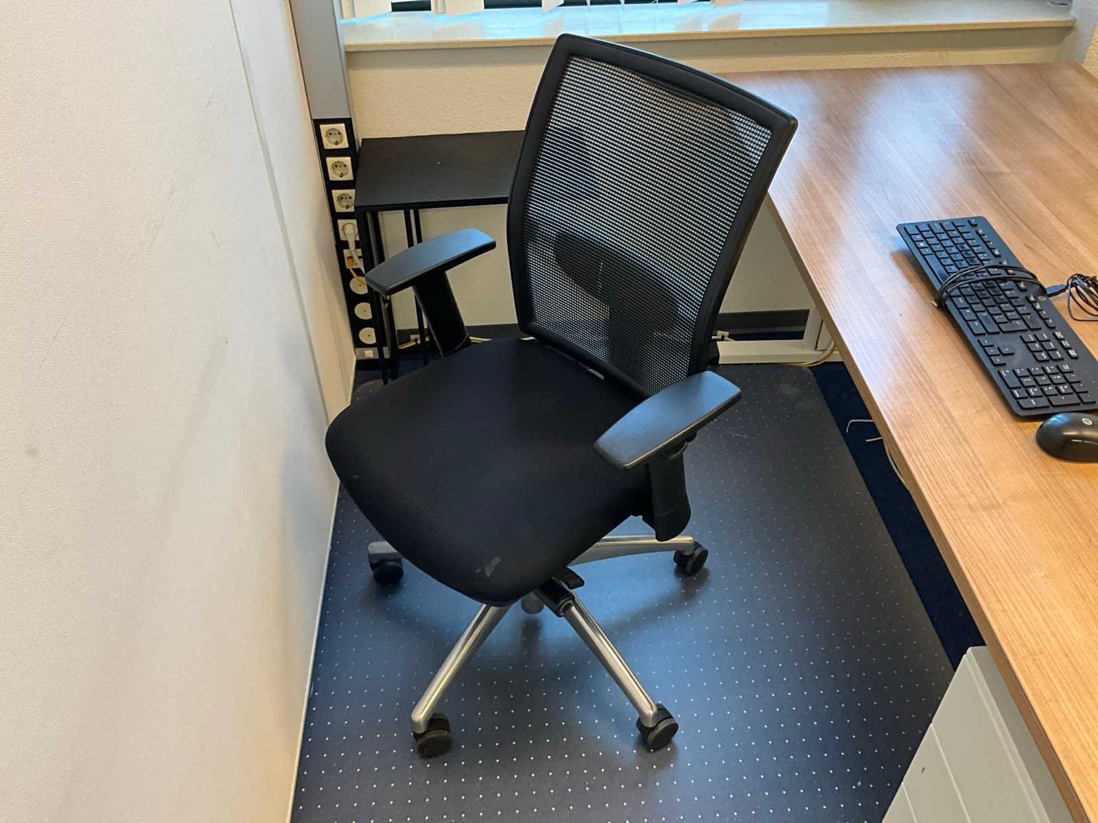 Bestaande uit inhoud kantoorruimte voorzien van onder andere: bureautafel 80x160cm in hoogte verstelbaar, ladeblok, bureaustoel, 3x De Arend eetkamerstoel, roldeurkast H75xB120xD44cm, hydrocultuurplant in pot, 2x bijzettafel, kapstok en whiteboard 90x120cm (wandgemonteerd)