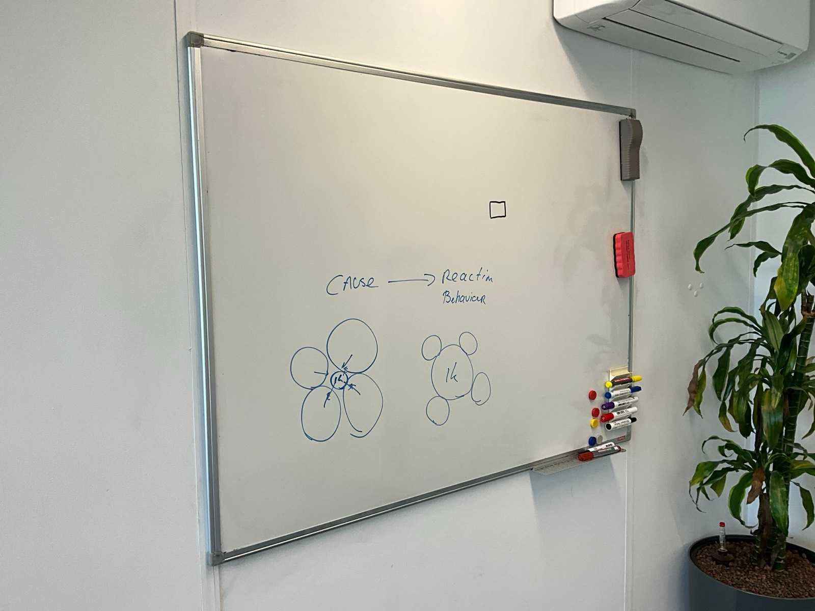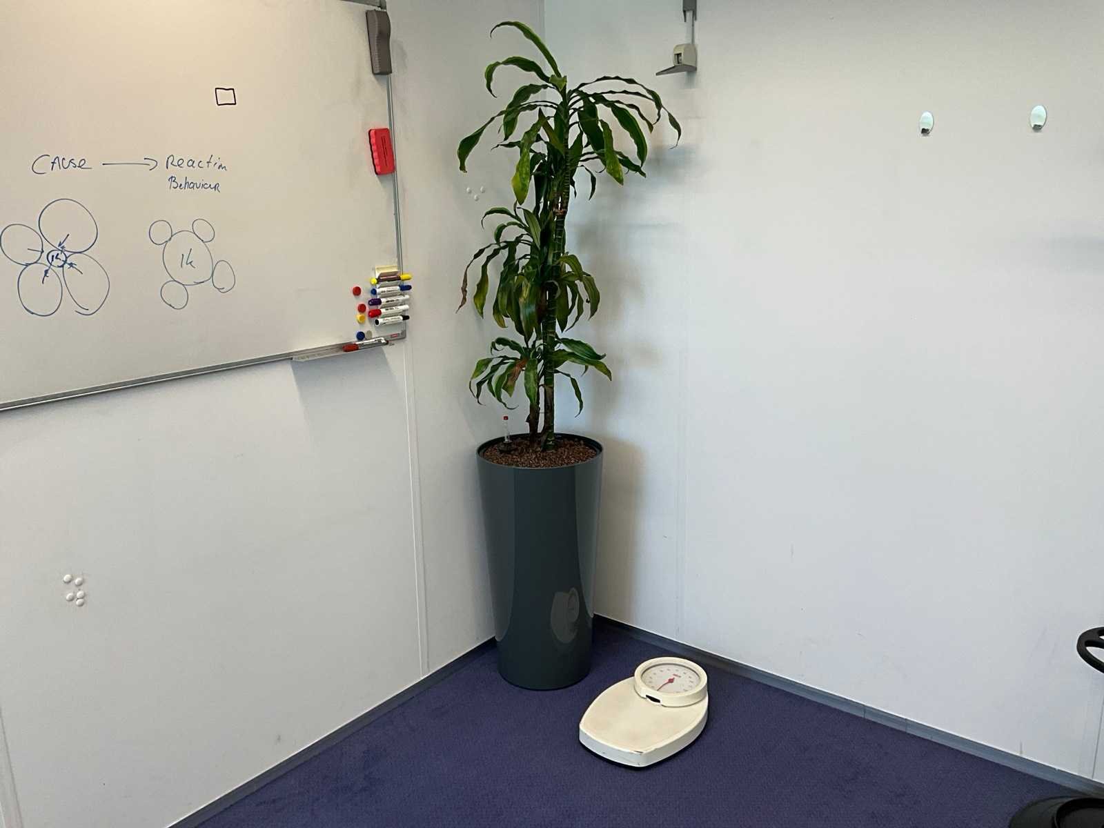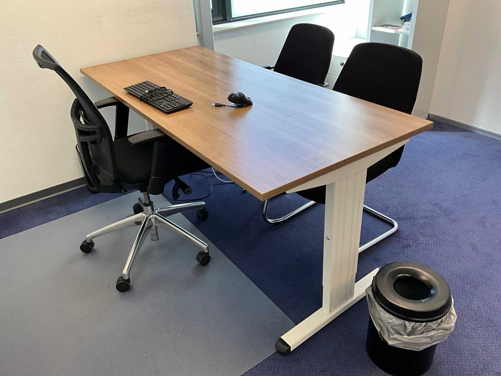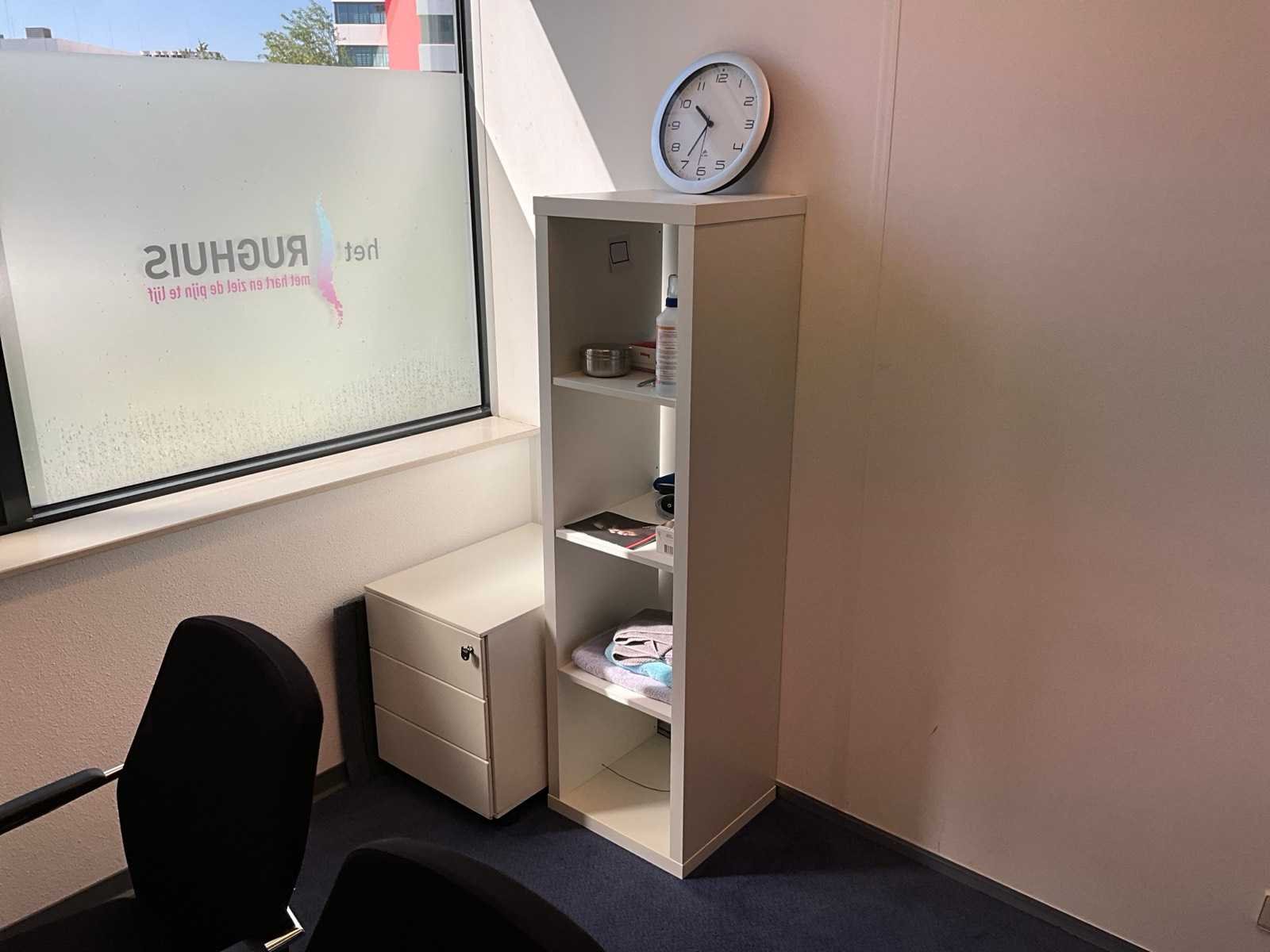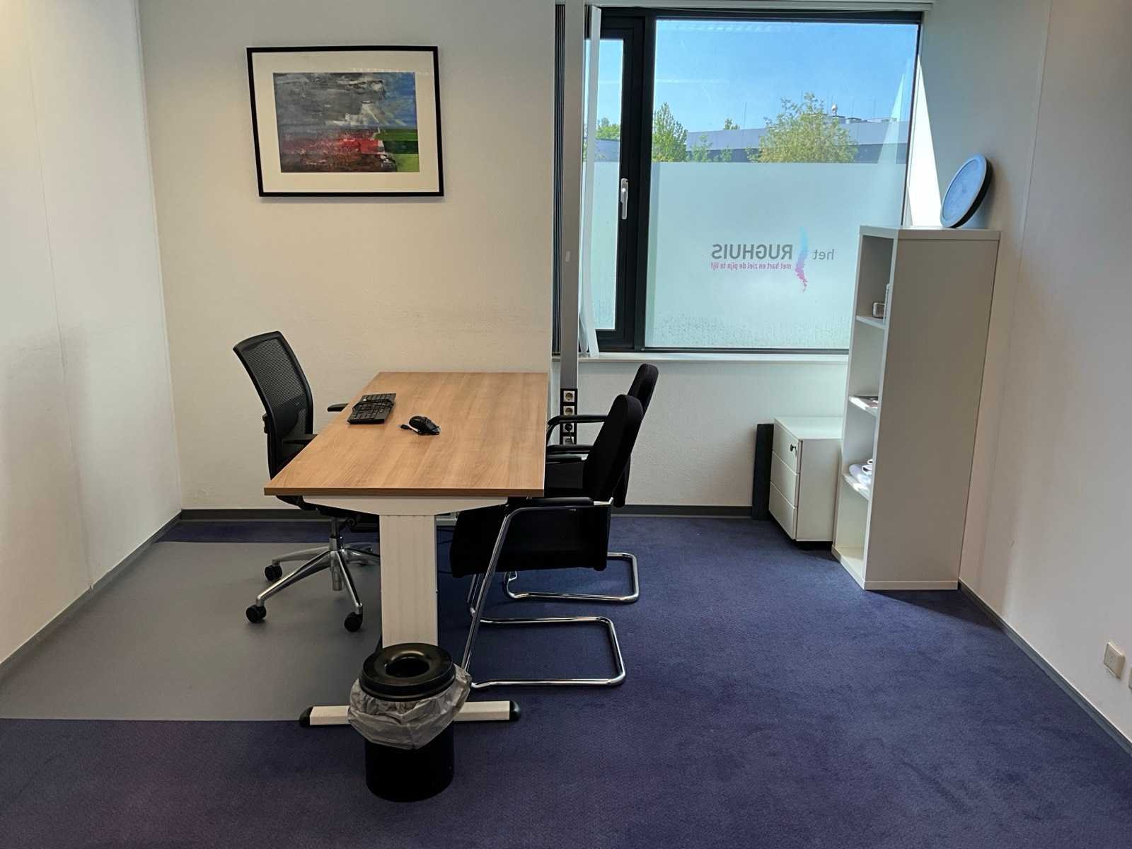 Bestaande uit inhoud kantoorruimte voorzien van onder andere: bureautafel 80x160cm in hoogte verstelbaar, ladeblok, bureaustoel, 2x vergaderstoel, vakkenkast, hydrocultuurplant in pot, kapstok, whiteboard 90x120cm (wandgemonteerd), wanddecoratie