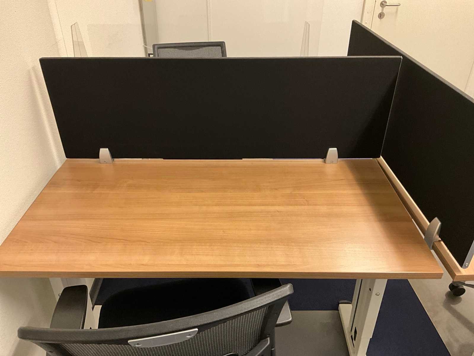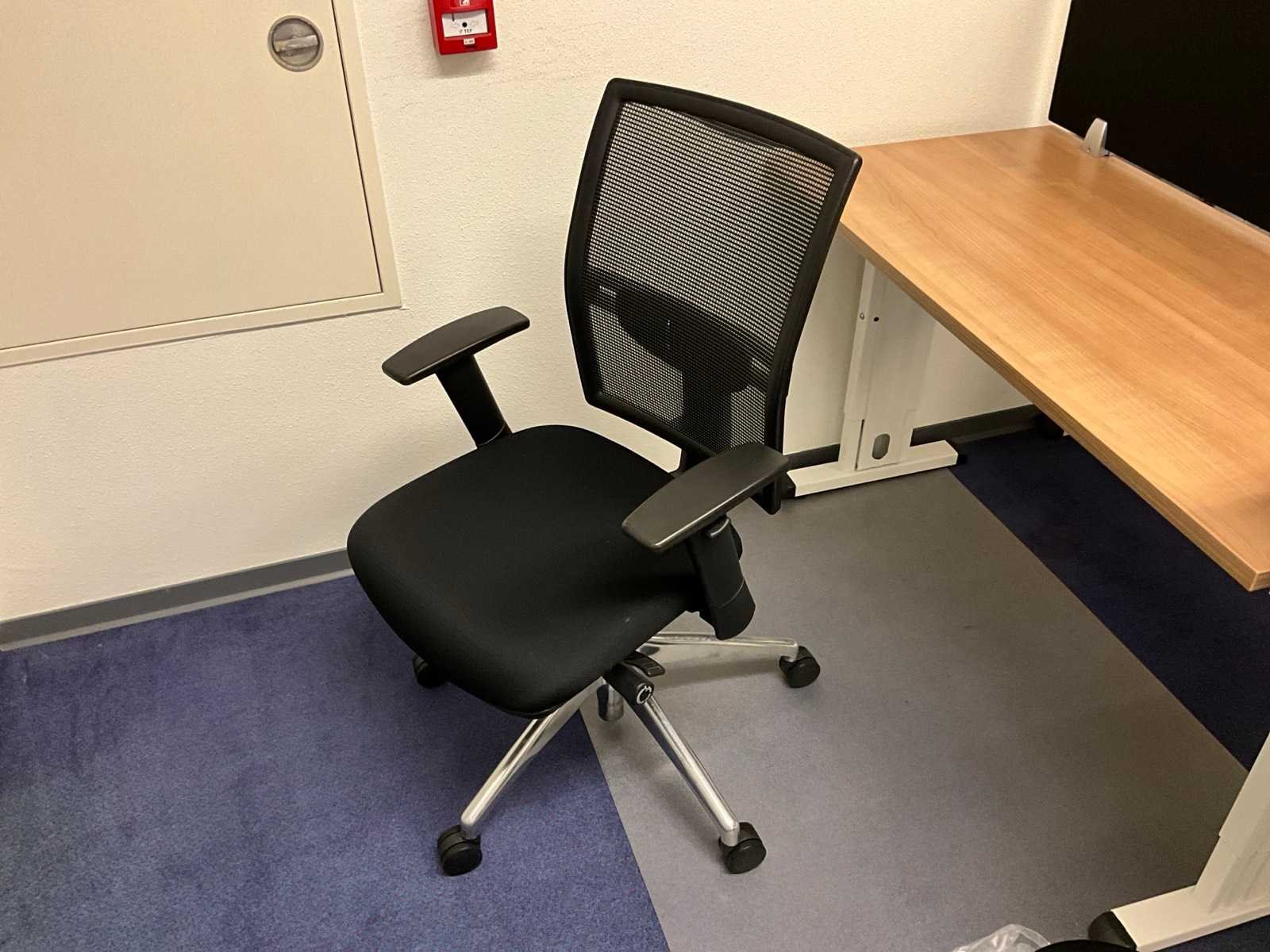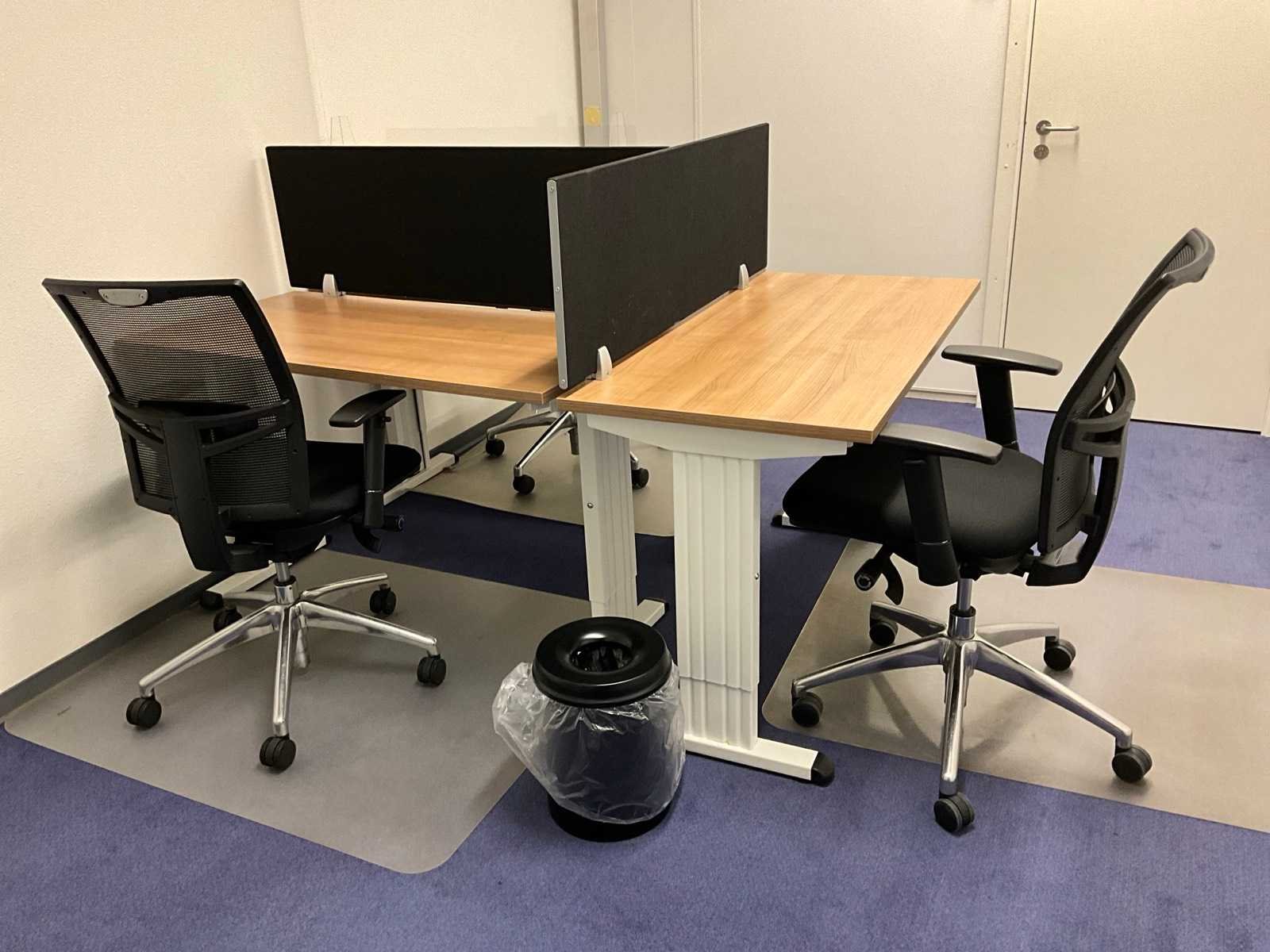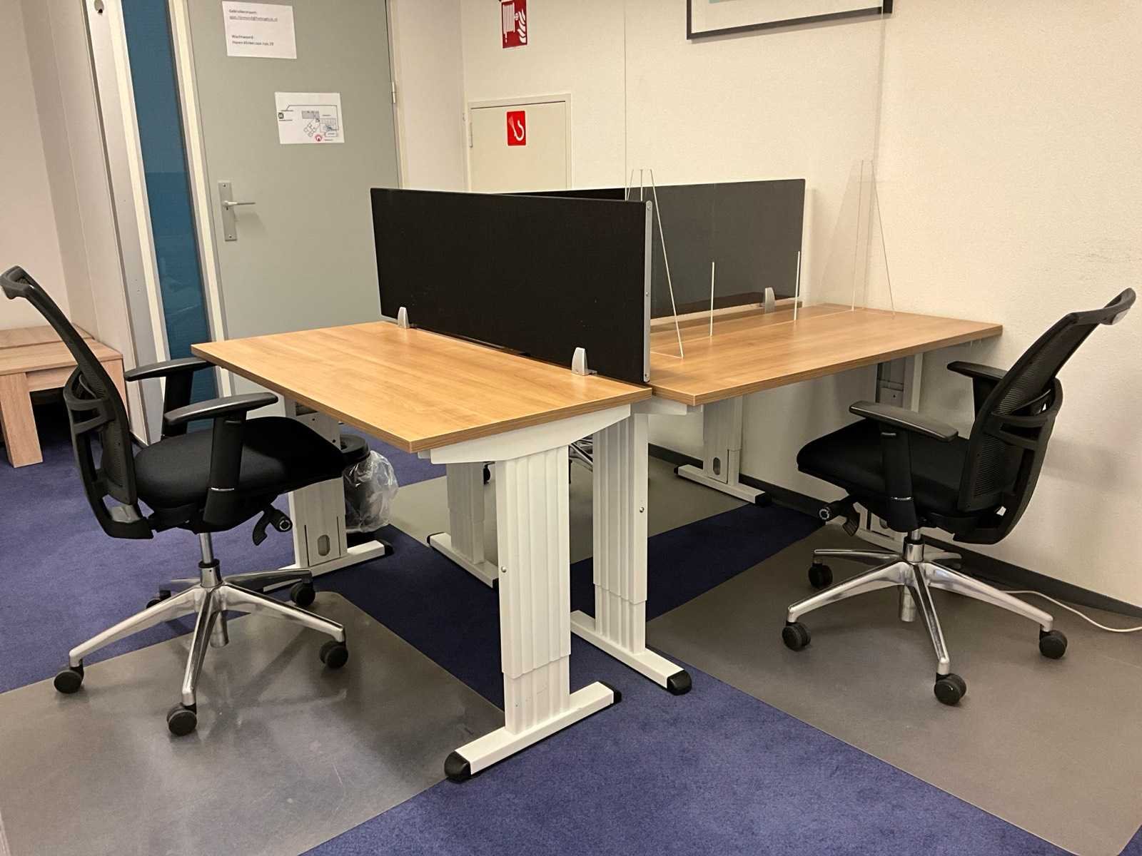 Bestaande uit inhoud kantoorruimte voorzien van onder andere: 3x bureautafel 60x120cm in hoogte verstelbaar, 3x bureaustoel, 2x bijzettafel, 2x scheidingswand, wanddecoratie, bureaustoelmatten