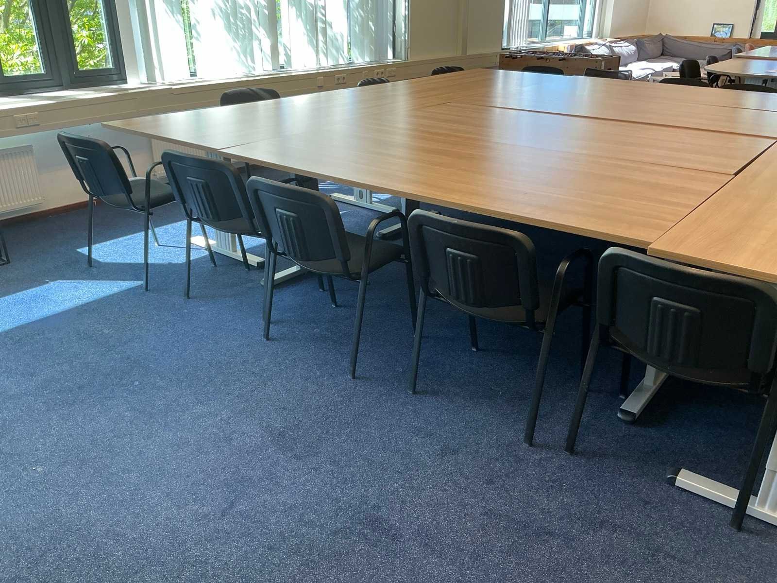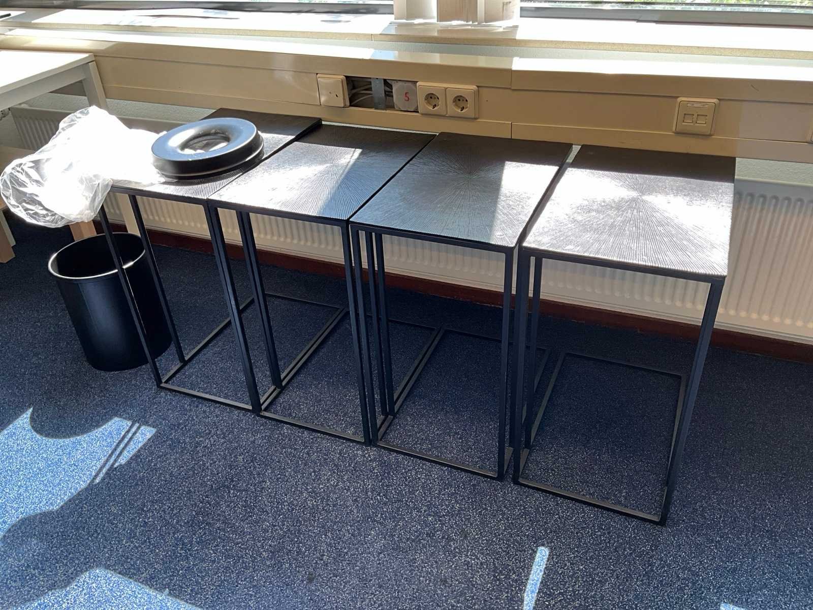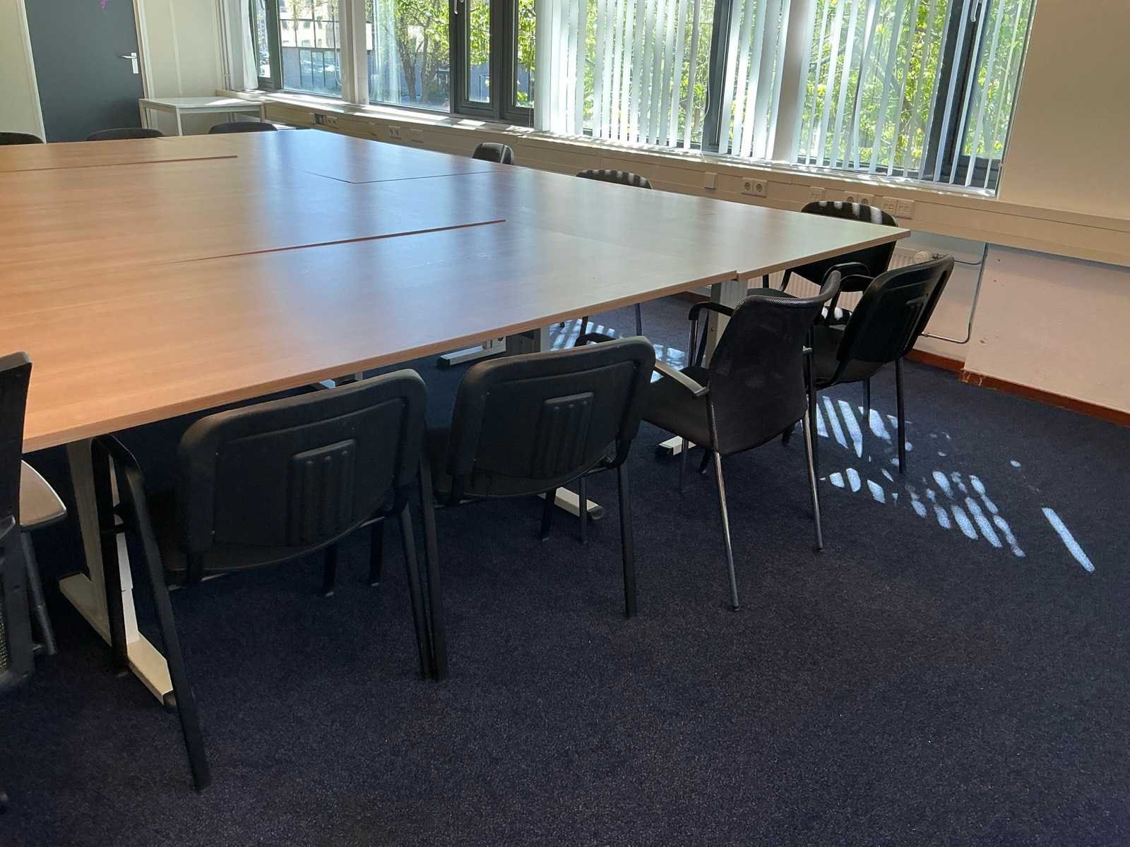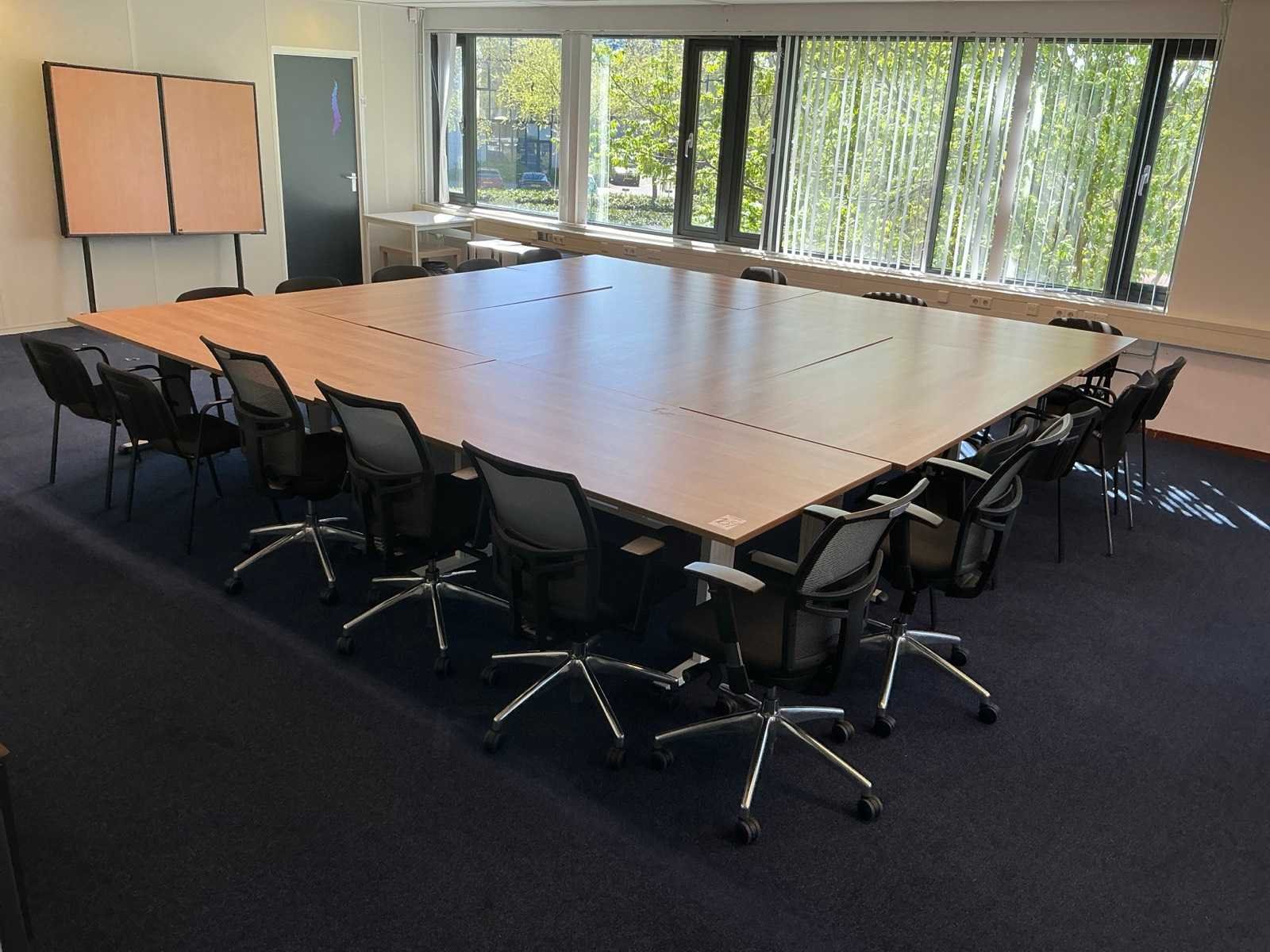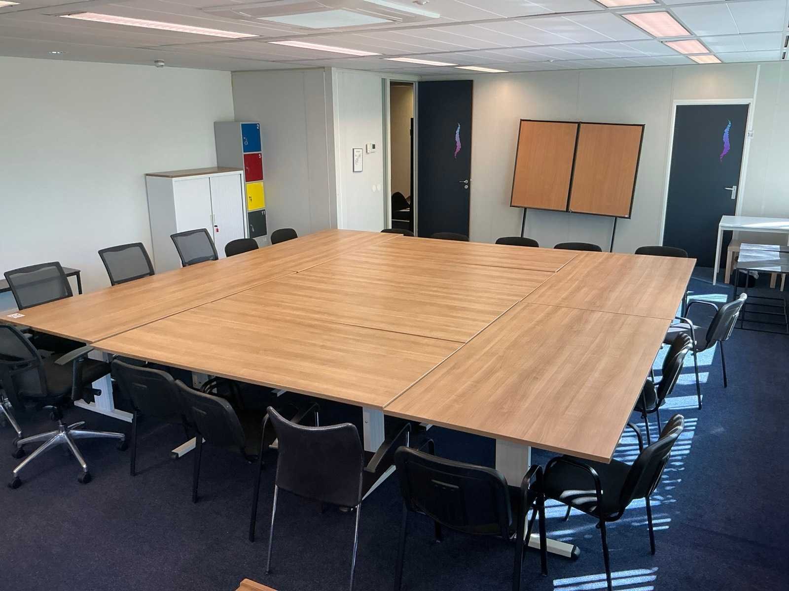 Bestaande uit kantineopstelling met 8 tafels (LxBxH:2000x1000x750mm) , 5 Bureaustoelen, 14 kantinestoelen, bankje, dossierkast (LxBxH:435x1200x1370mm) , lockerkast, 6x bijzettafel, en whiteboard.