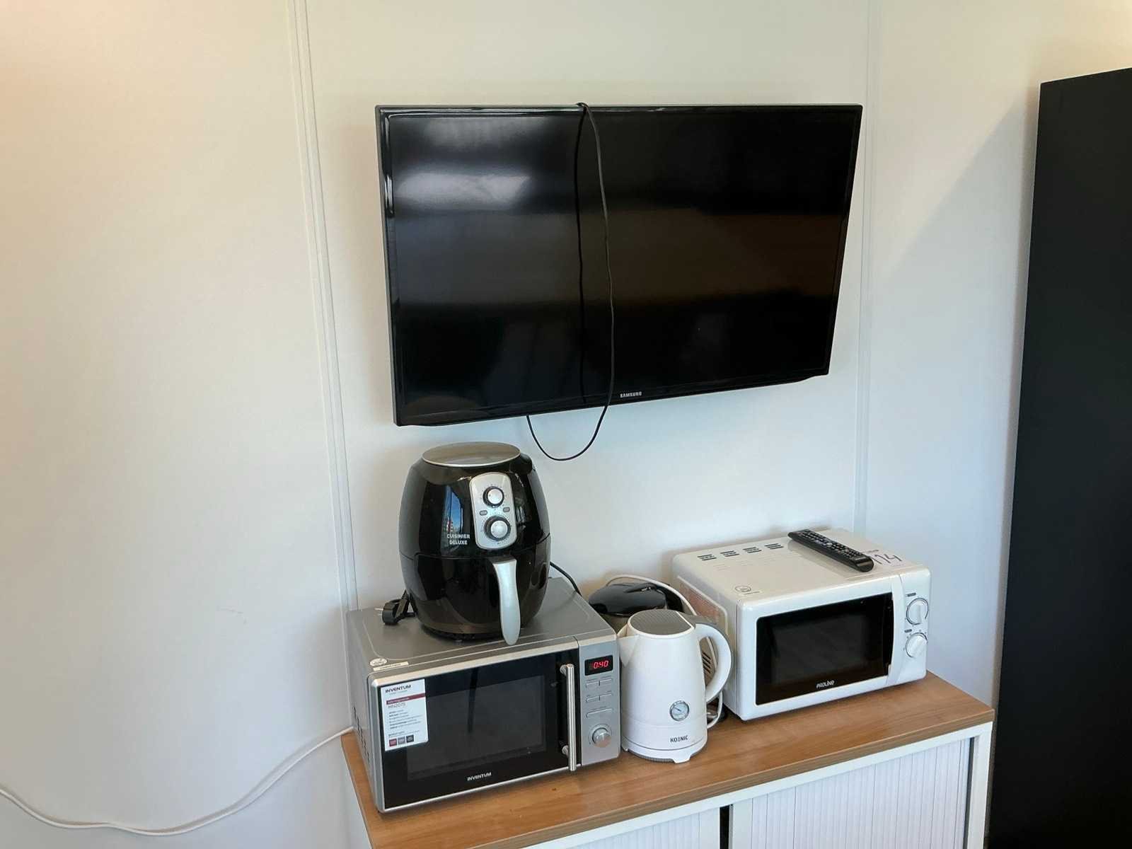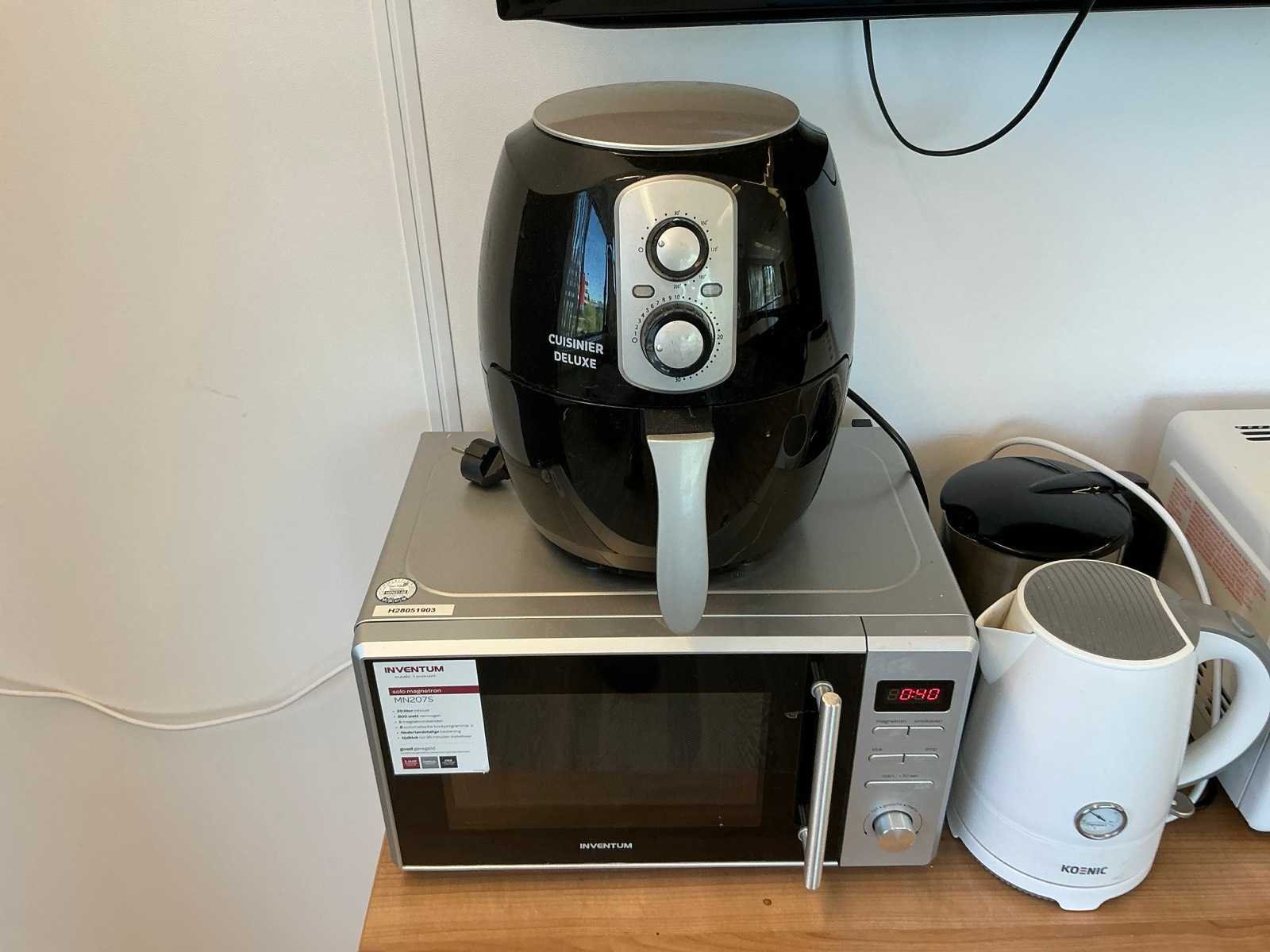 Bestaande uit: Cuisinier deluxe airfryer, inventum magnetron, proline magnetron, 2x waterkoker, en Samsung 40” Televisie