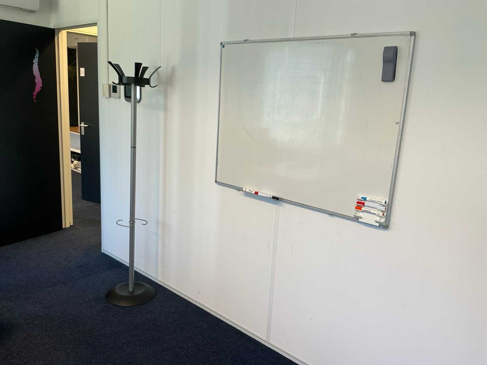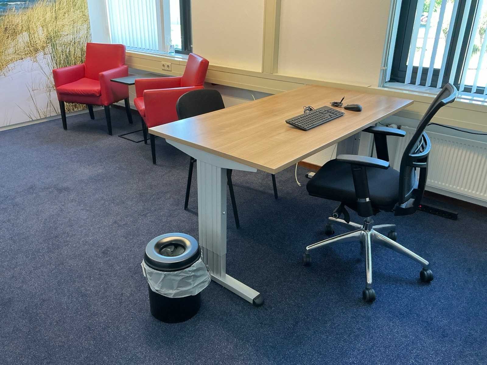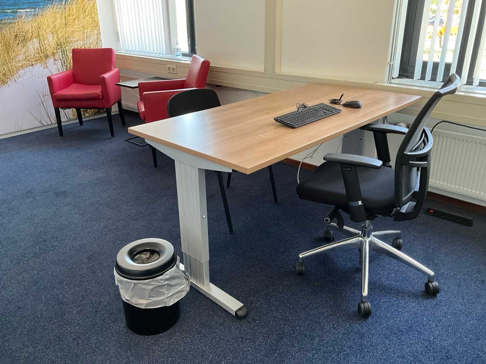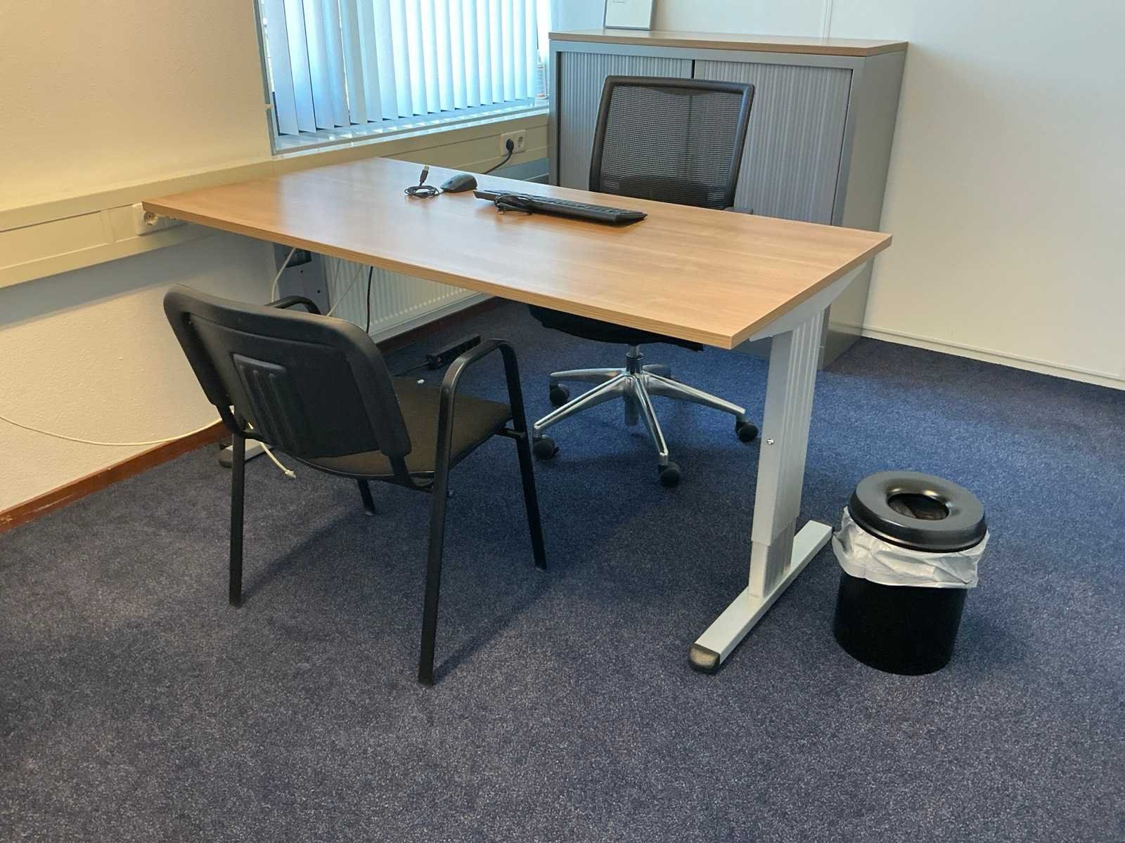 Bestaande uit inhoud kantoorruimte voorzien van onder andere: Bureau (LxBxH:800x1600:760mm), 1x bureaustoel, plant in pot circa 170cm hoog, 2x wachtkamer stoel met tafel, kantinestoel, dossierkast, peesdoek (LxH:3180x2530mm) en whiteboard.