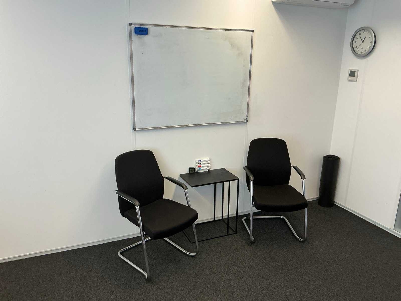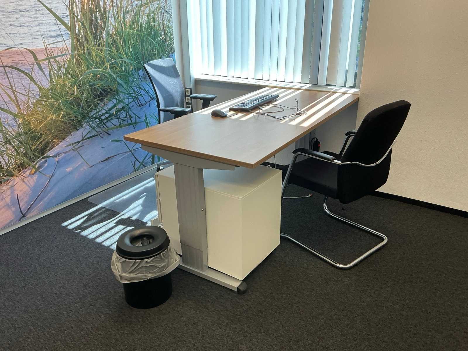 Bestaande uit inhoud kantoorruimte voorzien van onder andere: Bureau (LxBxH:800x1600:760mm), ladeblok, 1x bureaustoel, 3x wachtkamer stoel met tafel, dossierkast, plant in pot, peesdoek (LxH:5000x2500mm) en whiteboard.