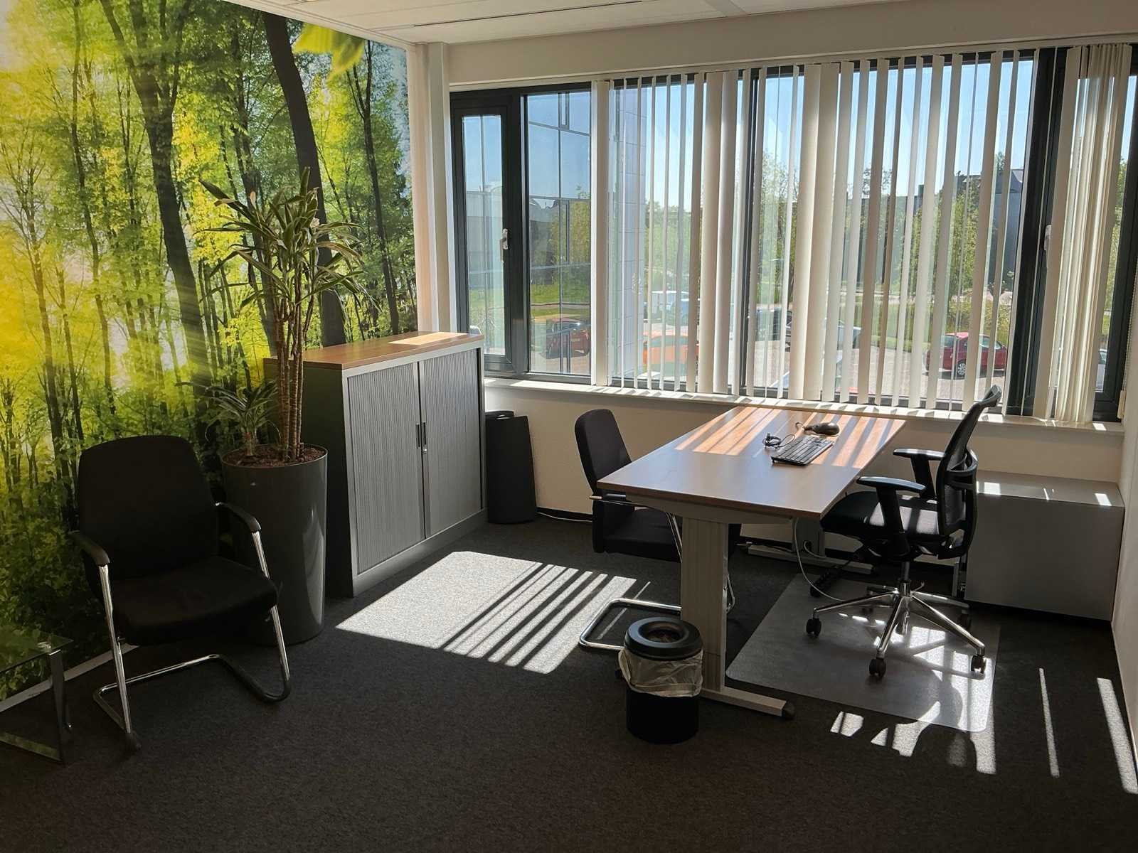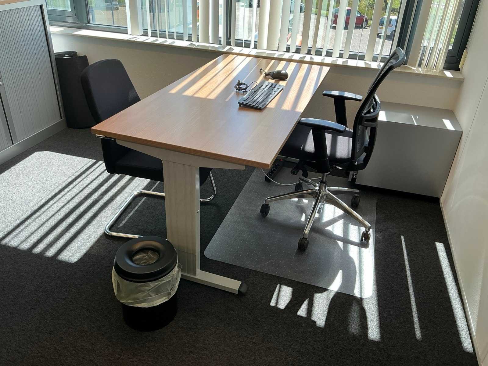 Bestaande uit inhoud kantoorruimte voorzien van onder andere: Bureau (LxBxH:800x1600:760mm), ladeblok, 1x bureaustoel, 3x wachtkamer stoel met tafel, dossierkast, plant in pot, peesdoek (LxH:5000x2500mm) en whiteboard.