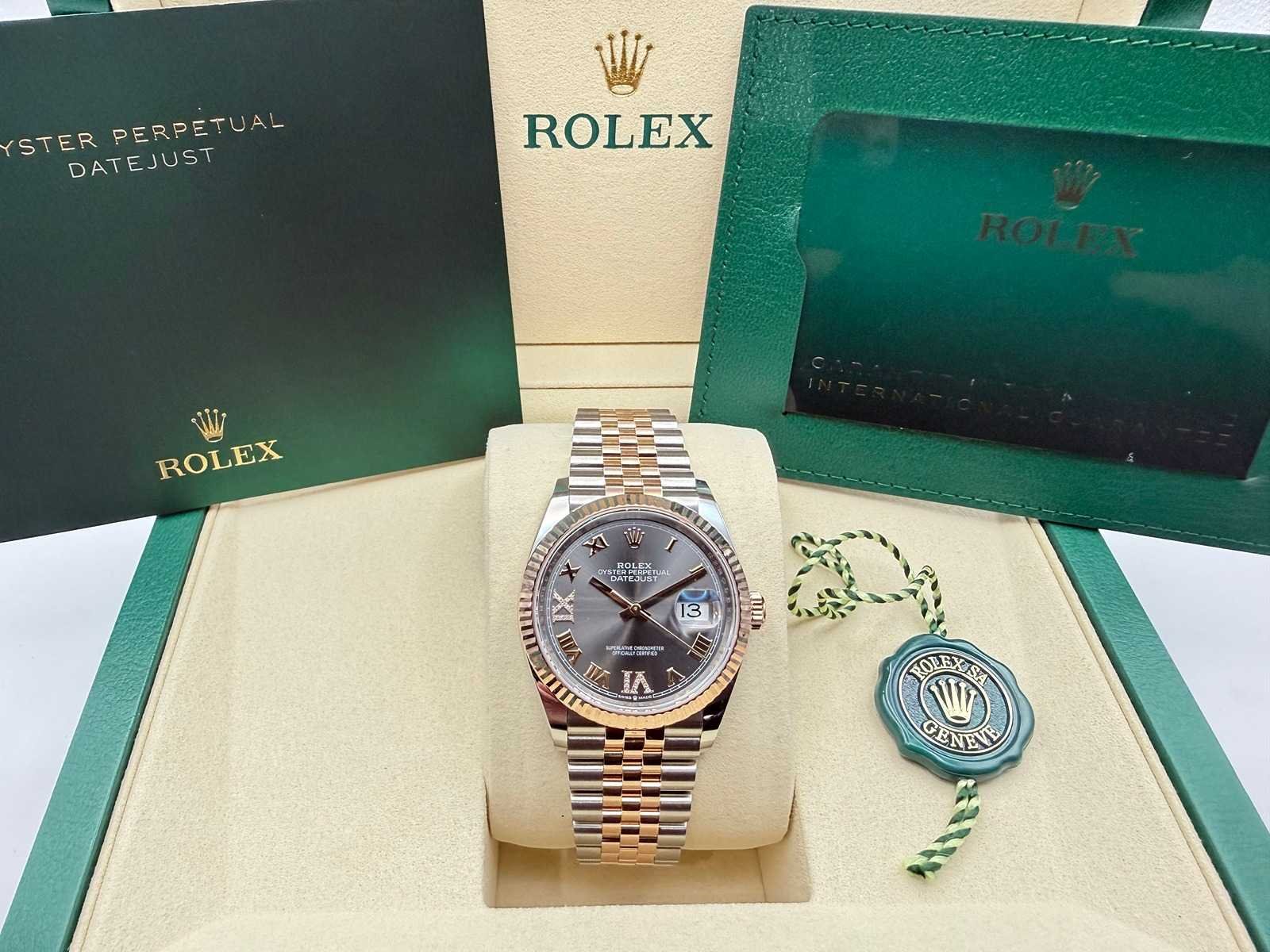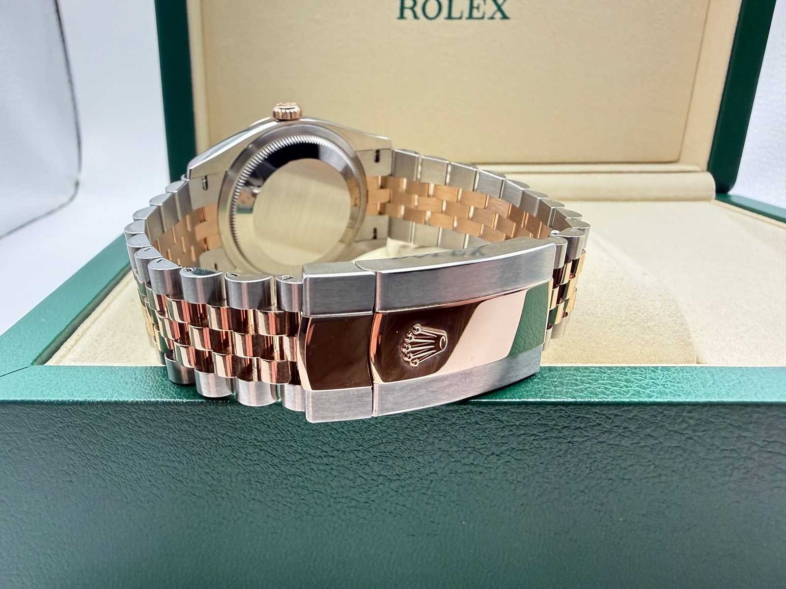 Condition: Brand new, unworn Set: Full set – includes original box, papers, Rolex warranty card, booklets, leather pouch, and Rolex tag Model: Datejust 36 (126231), 36mm Jubilee and Everose gold case with rose gold fluted bezel Features: Rhodium dial, Jubilee bracelet, automatic movement, scratch-resistant sapphire crystal Warranty: Full 5-year international Rolex warranty Bezorgtermijn 14 dagen Merk: Rolex Model: Datejust 36 Bouwjaar: 2026 Referentienummer: 126231 Materiaal kast: Steel Rose Materiaal horlogeband: Steel Rose Jubilee Fluted Materiaal sluiting: Steel Rose Wijzerplaat: Rhodium Diamonds On 6&9 Kastmaat: 36 MM