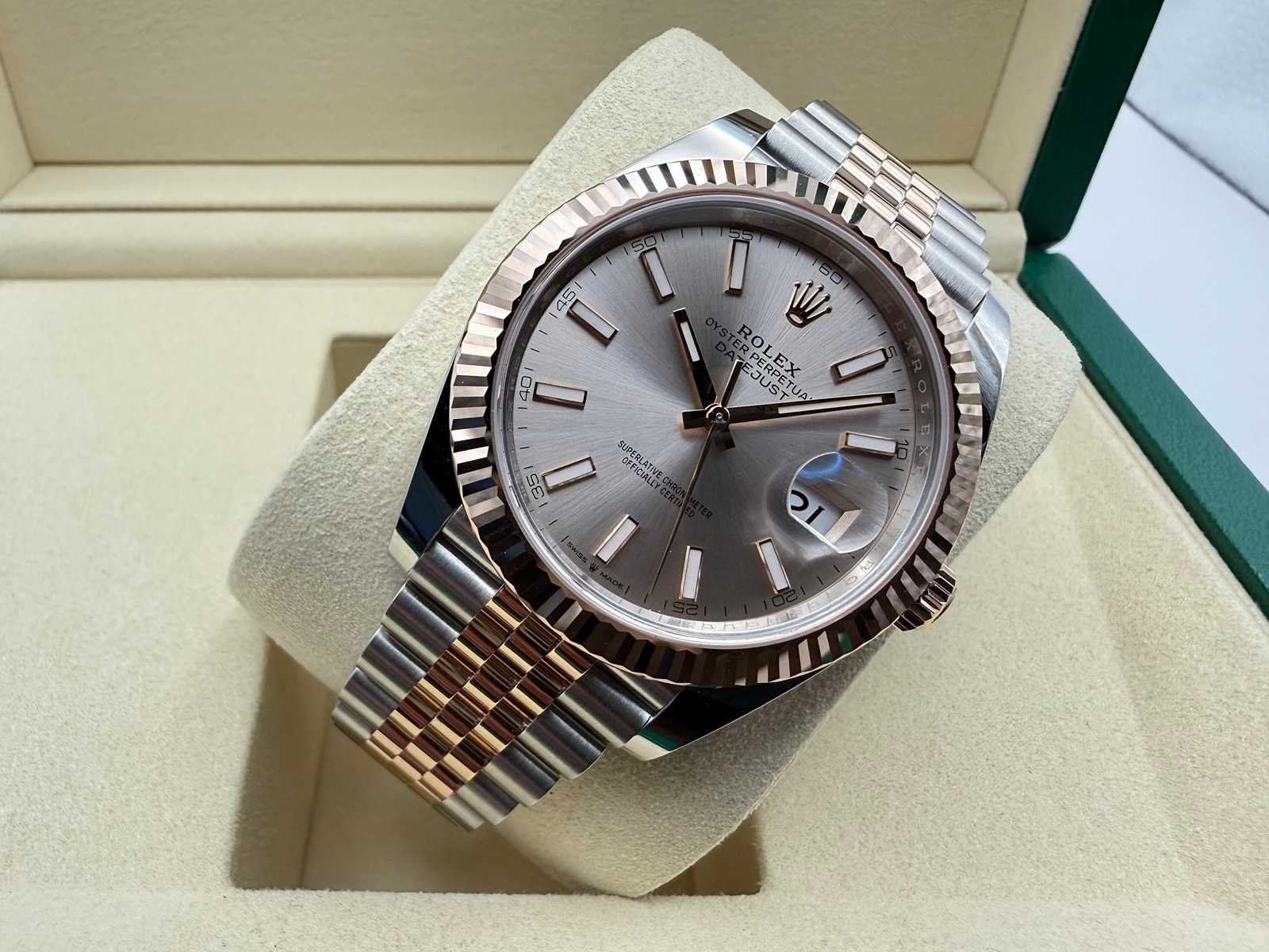 Key Highlights: Model: Rolex Datejust 41 Reference: 126331 Year: 2026 Condition: Unworn / New Case: Stainless steel & 18k Everose gold Dial: Sundust Bezel: Fluted Everose gold bezel Bracelet: Jubilee Movement: Automatic Rolex manufacture movement Warranty: 5-year international Rolex warranty Set: Full set with box, papers, warranty card & tag A refined and elegant Rolex Datejust 41 with warm Everose tones and a sophisticated Sundust dial—perfect for any occasion. Bezorgtermijn 3 dagen Merk: Rolex Model: Datejust 41 Bouwjaar: 2026 Referentienummer: 126331 Materiaal kast: Steel / Rose Jubilee Materiaal horlogeband: Steel / Rose Jubilee Materiaal sluiting: Steel / Rose Jubilee Wijzerplaat: Sundust Dial Kastmaat: 41MM
