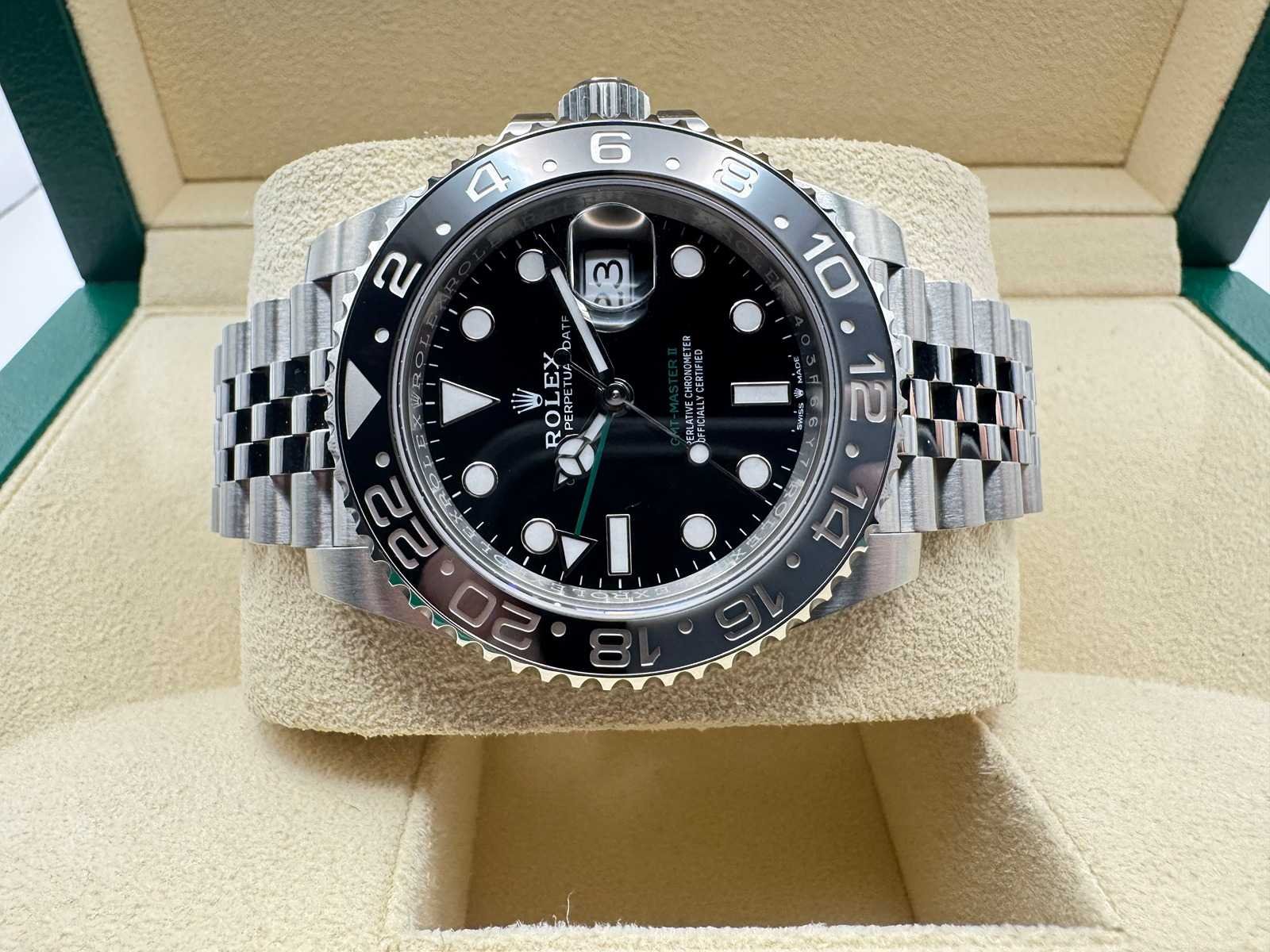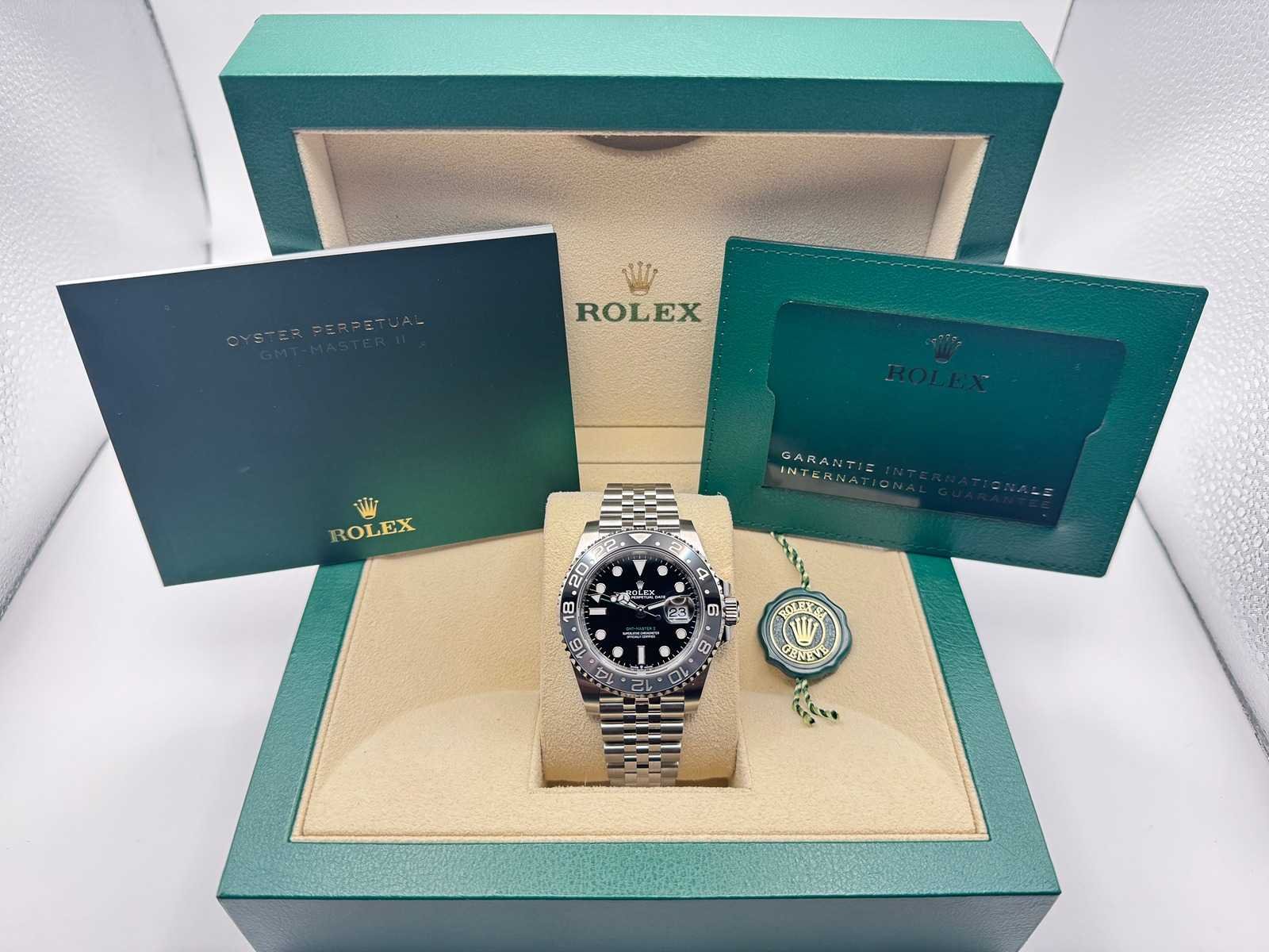 Key Features: Model: Rolex GMT-Master II Ref. 126710GRNR "Bruce Wayne" Condition: Brand new, unworn Material: Stainless steel Bracelet: Jubilee Bezel: Black & grey ceramic International warranty: 5 years remaining Full set: Includes box, papers, warranty card, and Rolex tag Bezorgtermijn 14 dagen Merk: Rolex Model: GMT-Master II Bouwjaar: 2025 Referentienummer: 126710GRNR Materiaal kast: Steel Materiaal horlogeband: Steel Jubilee Materiaal sluiting: Steel Wijzerplaat: Black Kastmaat: 40 mm
