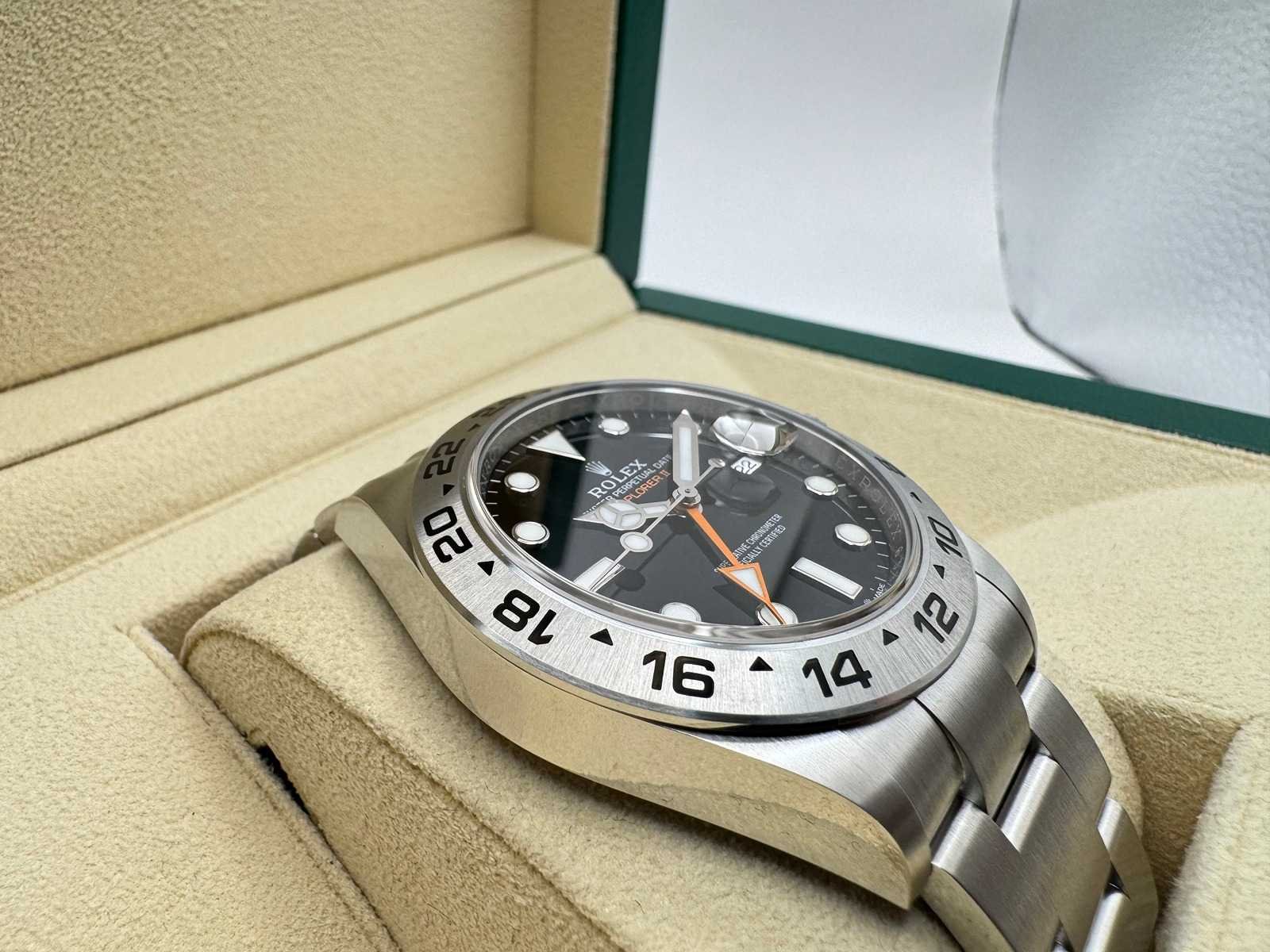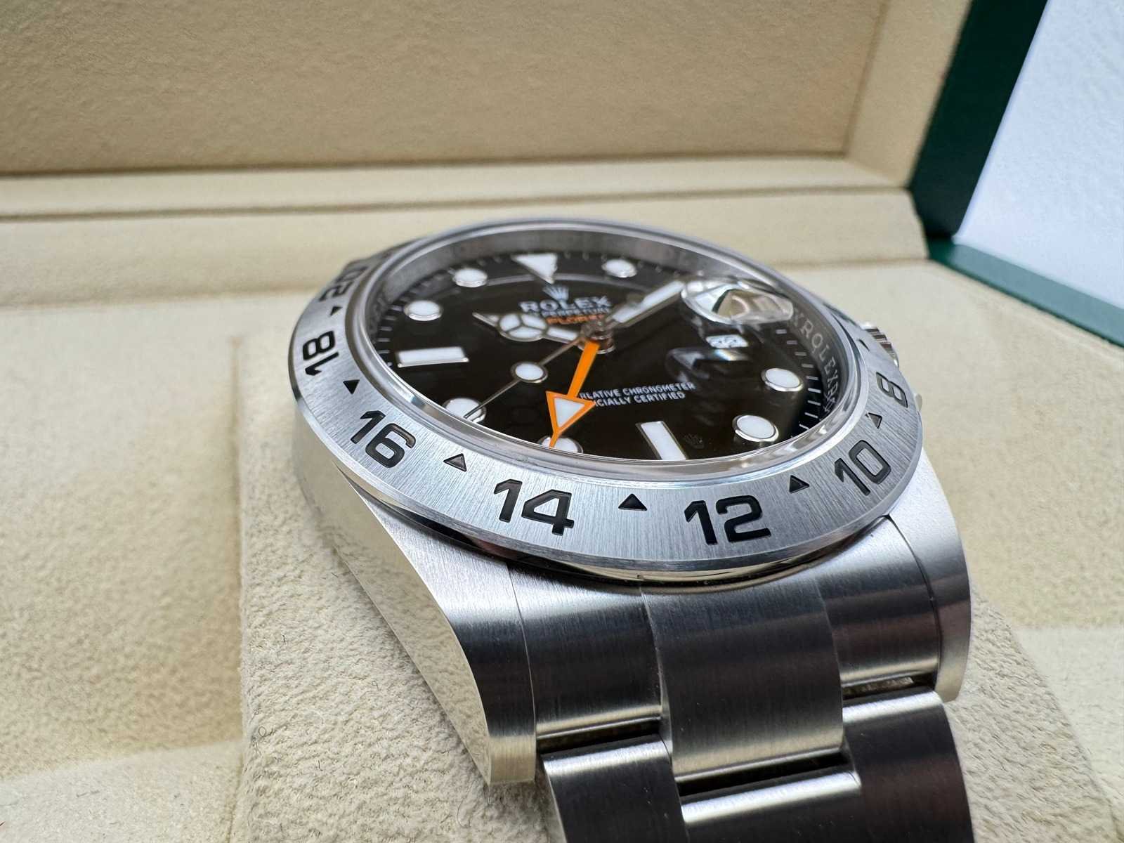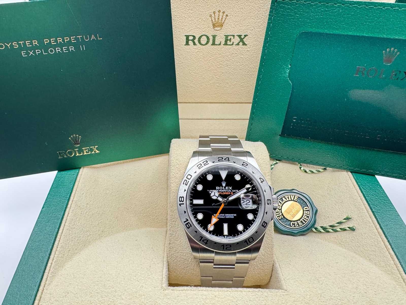 Presenting the Rolex Explorer II 226570, a robust and adventurous timepiece crafted from stainless steel, featuring a black dial with the signature 24-hour orange hand for dual time zone functionality. This watch is brand new and comes as a full set, including: Rolex guarantee card Original box Booklets & wallet Rolex tag Key Features: Model: Rolex Explorer II (Ref. 226570) Material: Stainless steel Dial: Black, with a bold orange 24-hour hand Movement: Rolex’s in-house automatic GMT movement Condition: Brand new, unworn Warranty: Full 5-year international Rolex warranty A must-have for explorers and collectors alike, combining functionality with Rolex’s timeless design. Get yours today! Bezorgtermijn 7 dagen Merk: Rolex Model: Explorer II Bouwjaar: 2026 Referentienummer: 226570 Materiaal kast: Steel Materiaal horlogeband: Steel Materiaal sluiting: Steel Wijzerplaat: Black